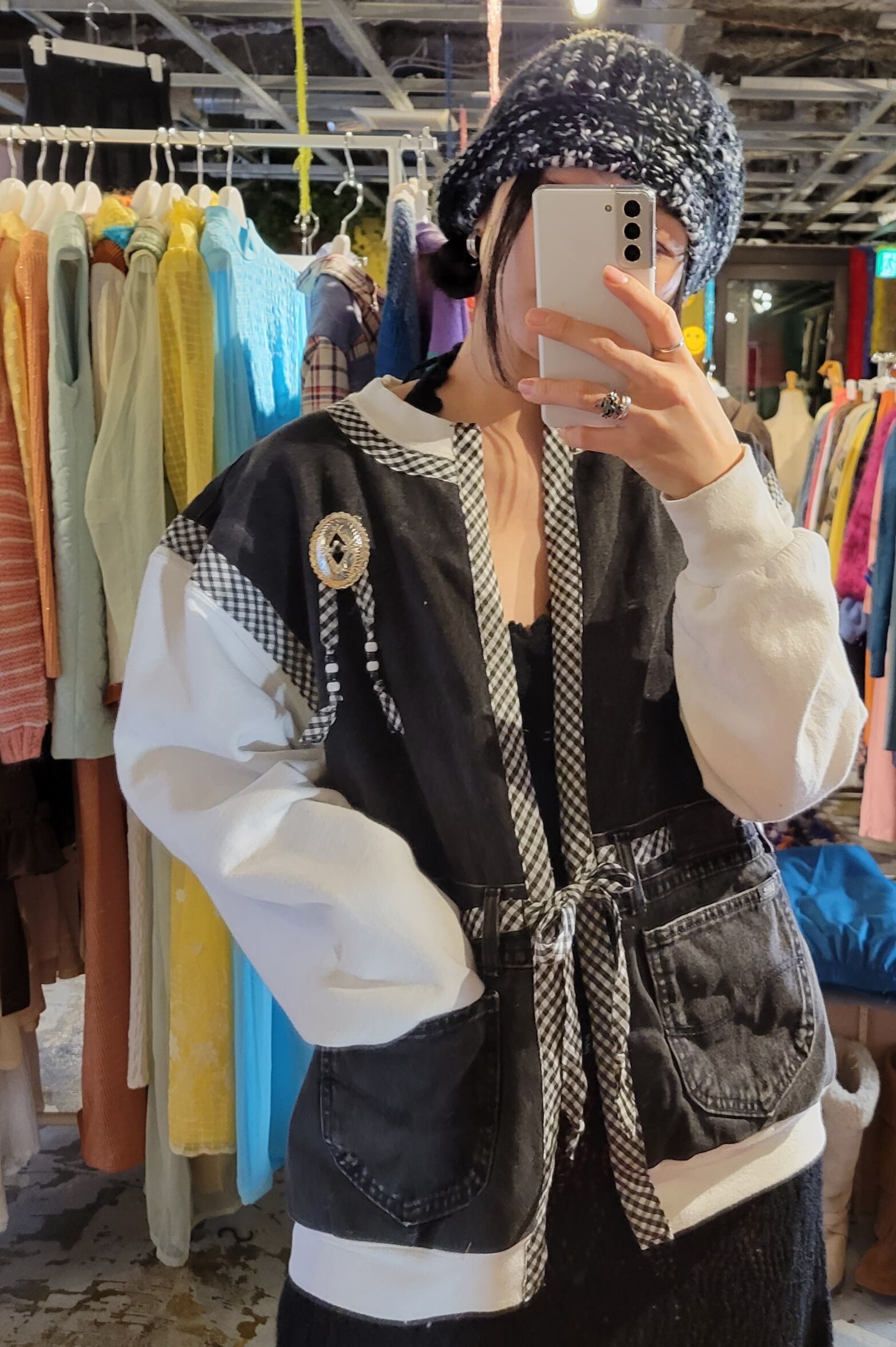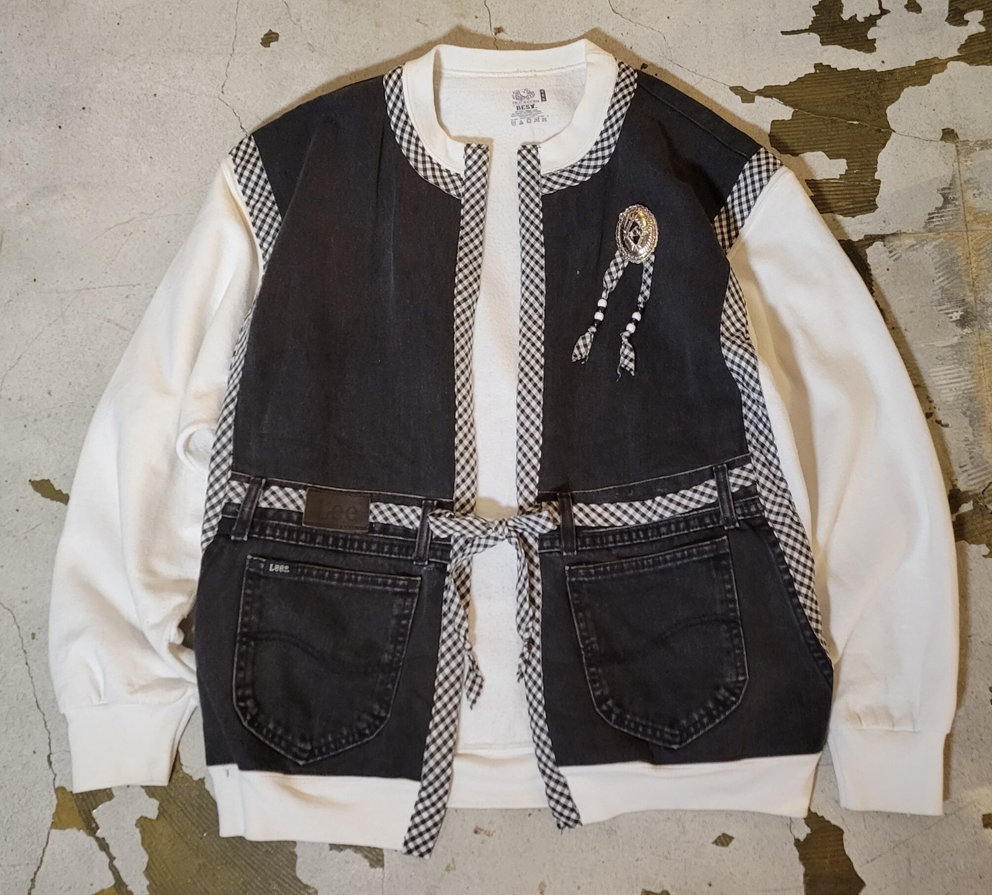 ブラックデニムと、スウェットからなるリメイクのジャケットです。