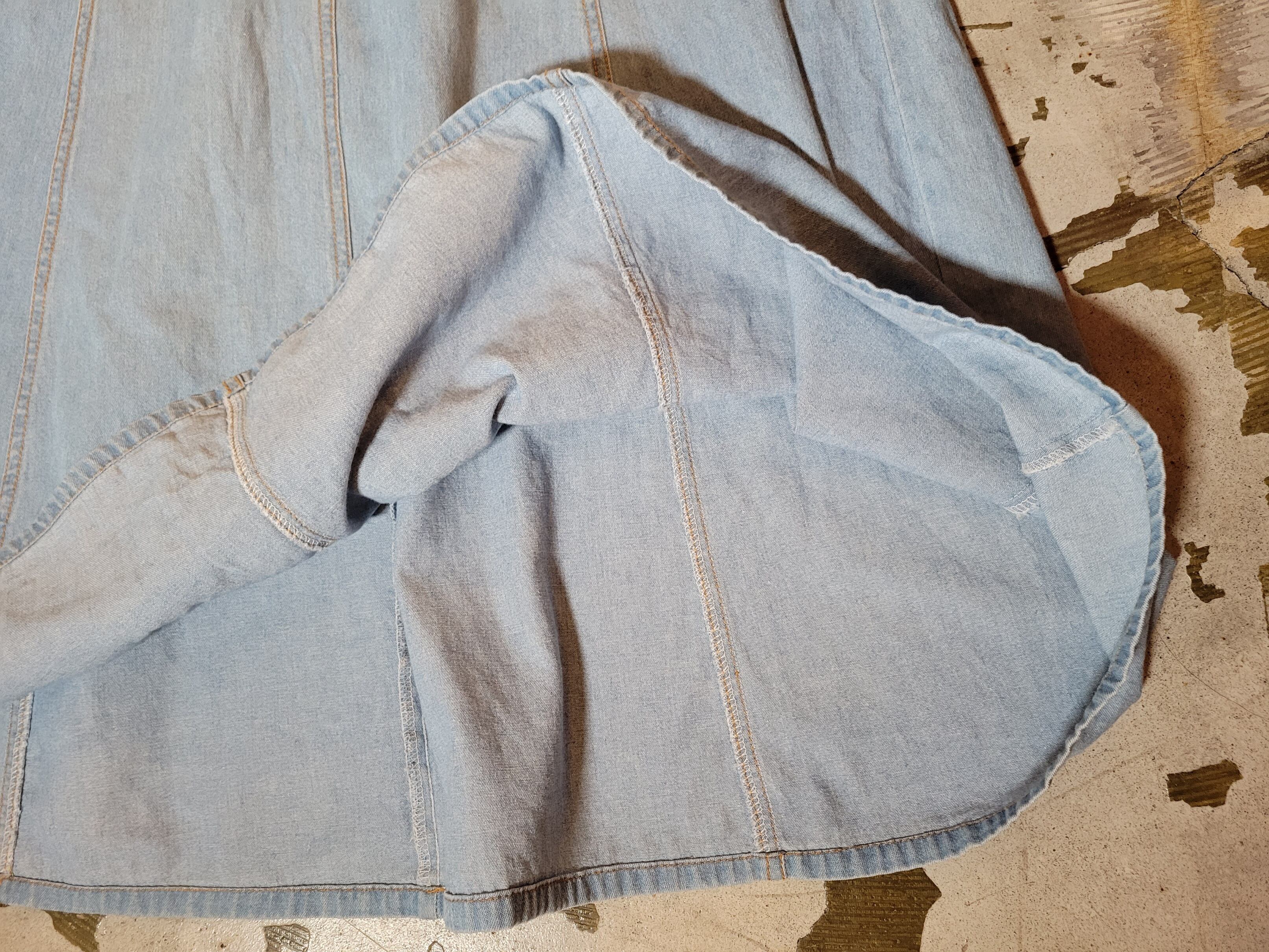 色味は、ライトブルー × ピンク × グリーン × イエロー × ホワイト。キザギザと切り替えられた花柄のゴブラン生地と、明るいデニムの組み合わせが可愛らしい一着◎古着らしい雰囲気と、揺ったりとしたサイズ感でレイヤードしやすいのが魅力的です。