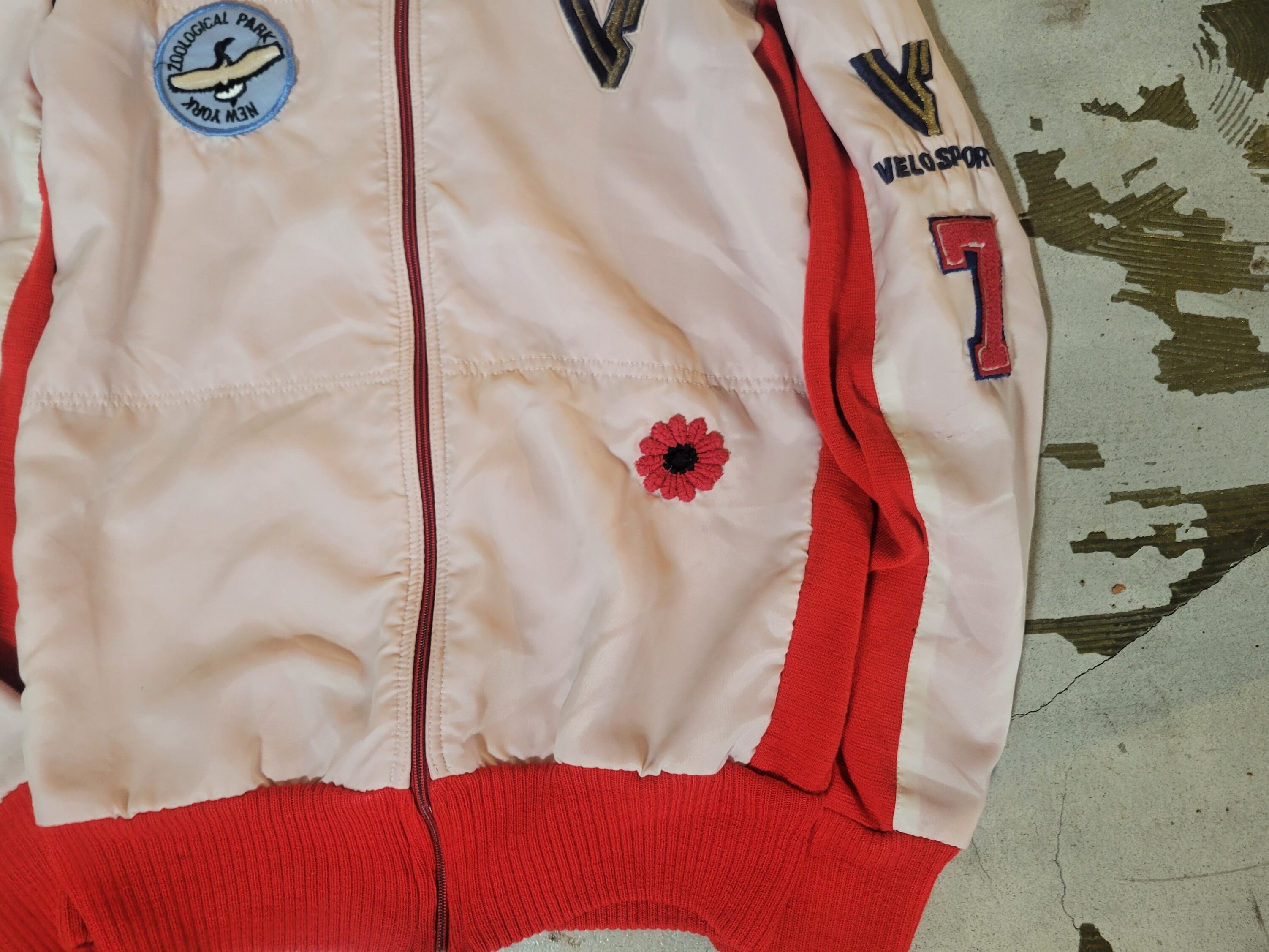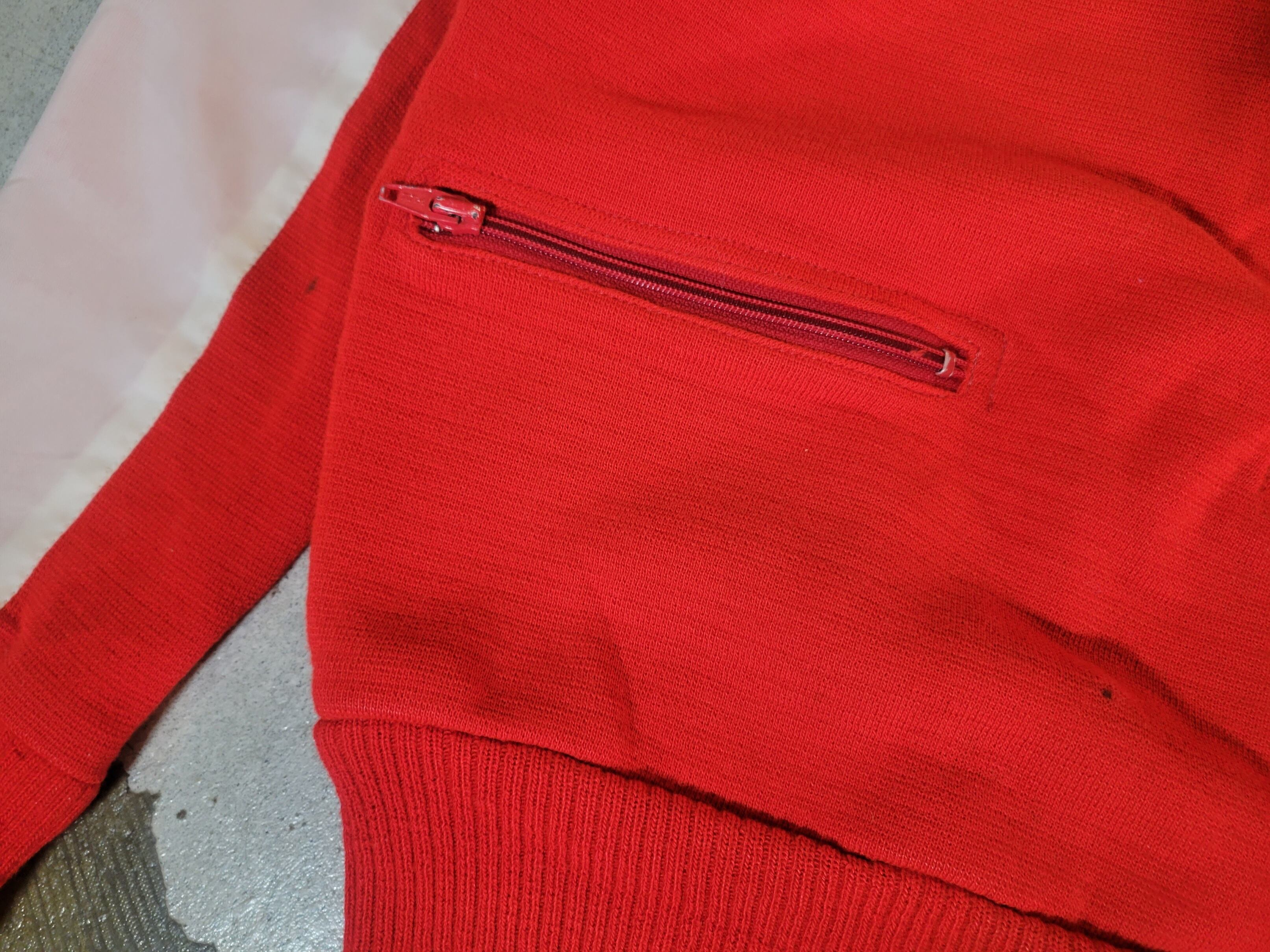 色味は、レッド × ホワイト × ネイビー × ゴールド × ブルー。シャカシャカとした生地とニットの切り返し、背面のポケットなどスポーティーな雰囲気と施されたワッペンがなんだか気になる一着です。