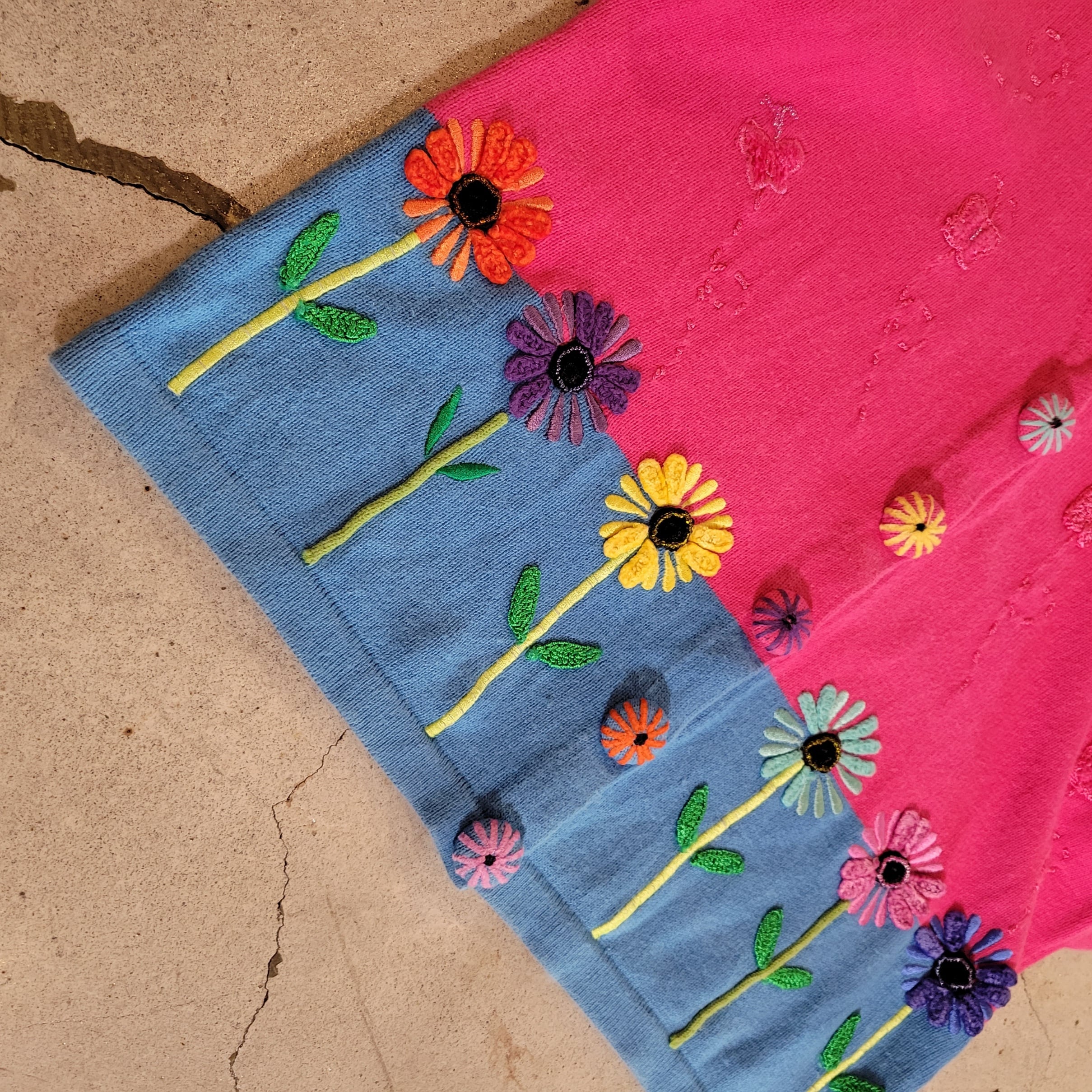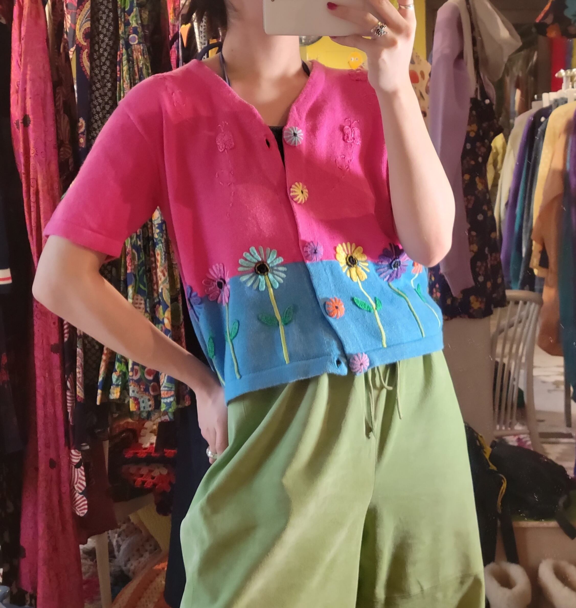 色味は、ピンク × ブルー × グリーン × イエロー × パープル。お花とちょうちょ、刺繍されたりビーズをつけたり一つ一つ凝られたディティール、色合い、デザインのキュートさ…盛りだくさん。立体的なユニークさがラブリー!