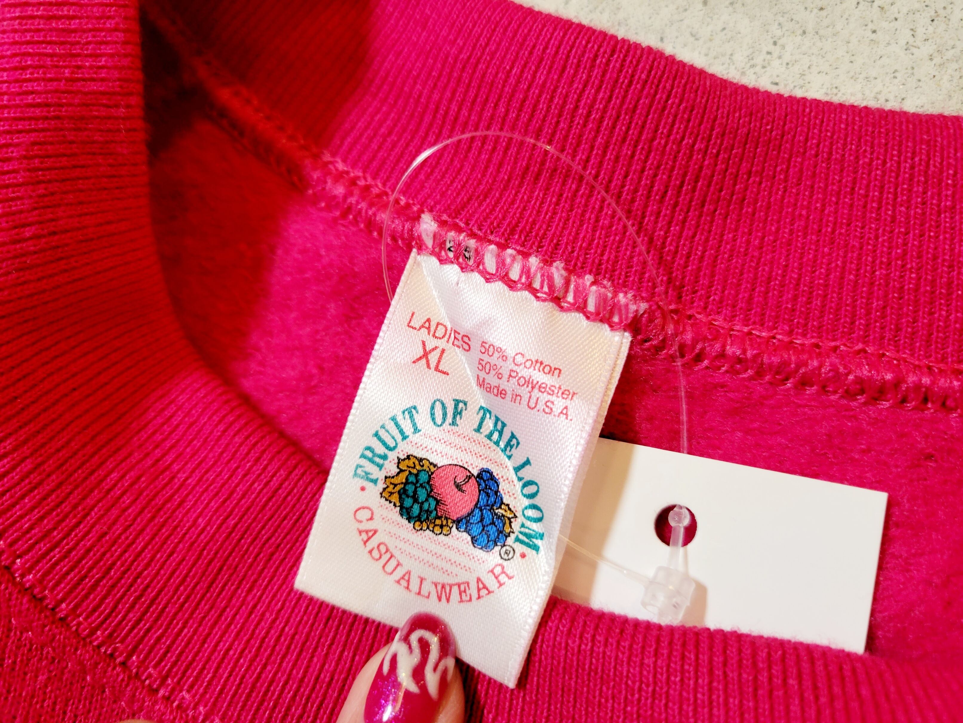 色味は、マゼンタ×ネイビー×ピンク×ブルー。カッティングされたモチーフの窓から裏地の生地が覗くユニークなデザイン。パッチワークのような雰囲気が可愛い一着です。サイズはゆるっと。