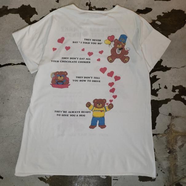 色味は、ホワイト×レッド×ブラック×ブラウンなどなど。ラブリーすぎる熊ちゃんが両面プリントで存在感抜群。リラックス感のある首もと、ゆったりしたサイズ感、パキッとしすぎないプリントなど愛くるしさが沢山つまった一着です。