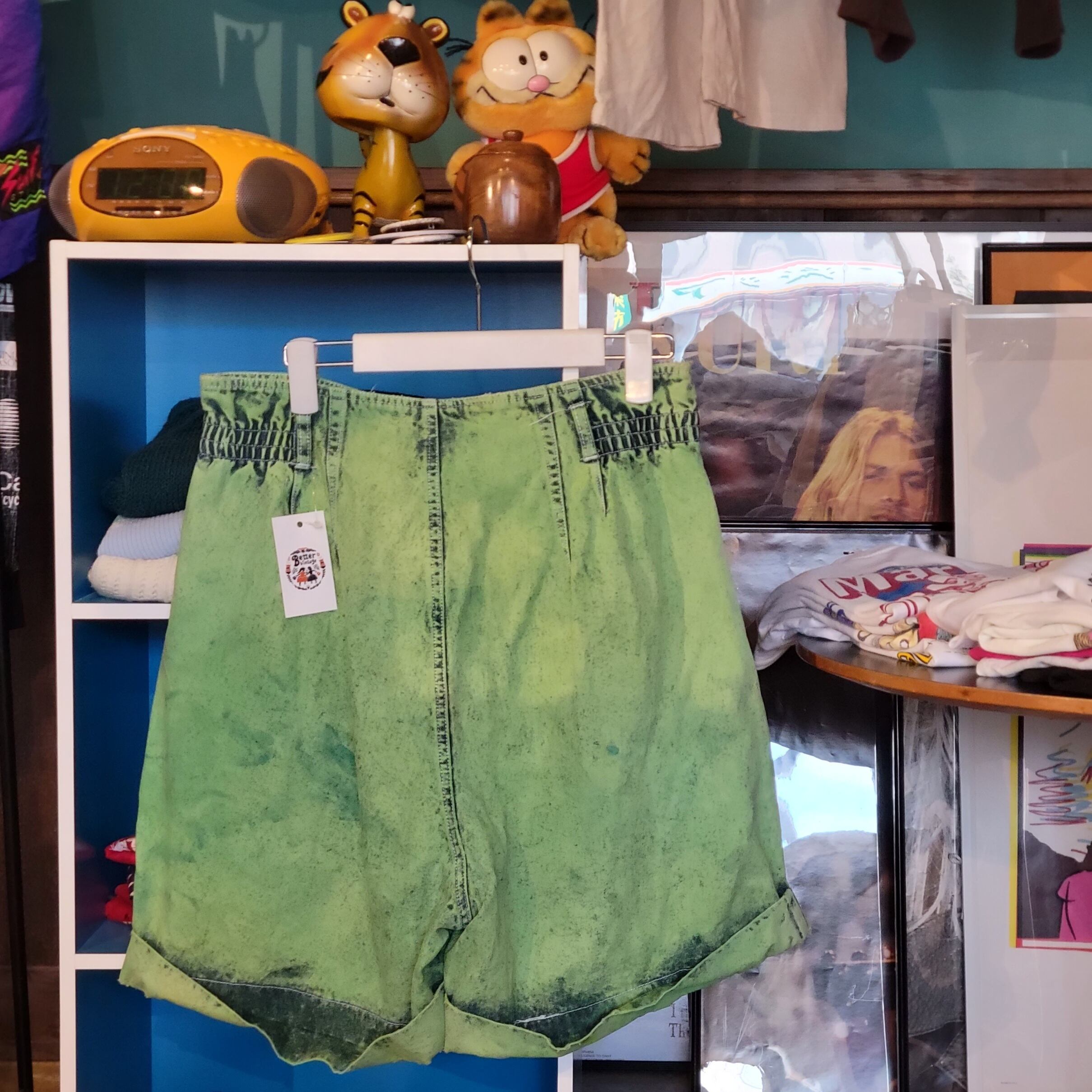色味は、グリーン×ブルー。大きなサイジングとフレアなシルエットとなんとも言えないカラーリングが魅力的。ビッグシルエットなアイテムとダボダボでストリートな雰囲気で着るもよし、ガバッとはいてギュギュっとウエストを縛って丈を調節しつつフィット感のあるトップスとあわせるのもかわいいです。