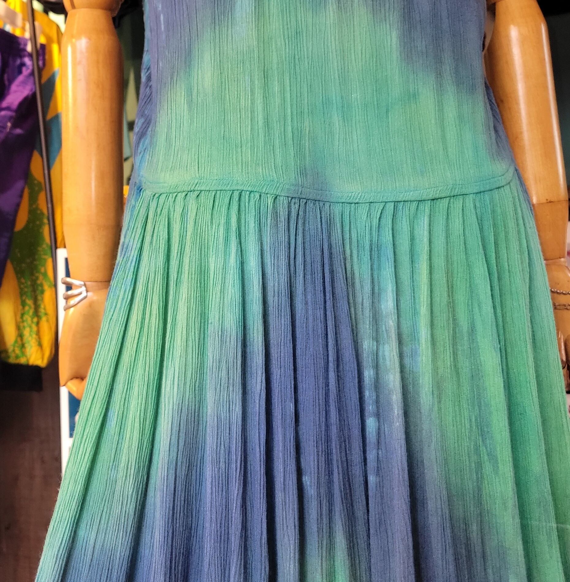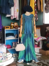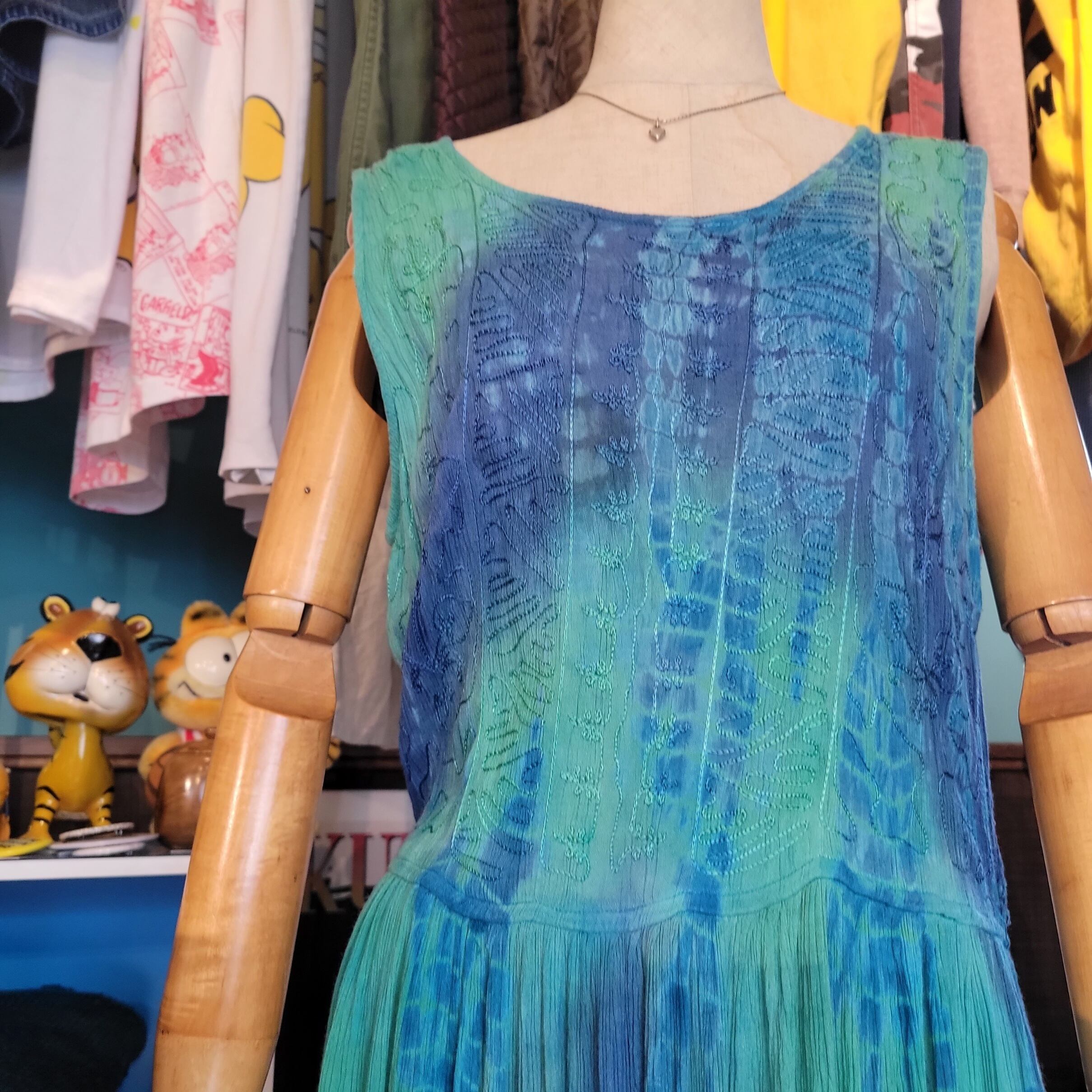 色味は、ブルー×グリーン。絶妙なカラーリングとレーヨンならではの軽やかな着心地、主張が強くないけれどそっとはいった刺繍がほどよいアクセント。一枚でもキャミを重ねても、Tシャツなどとレイヤードしてスカート部分を楽しんでもよし。華やかな夏を彩ってくれる使い勝手のよい一着です。