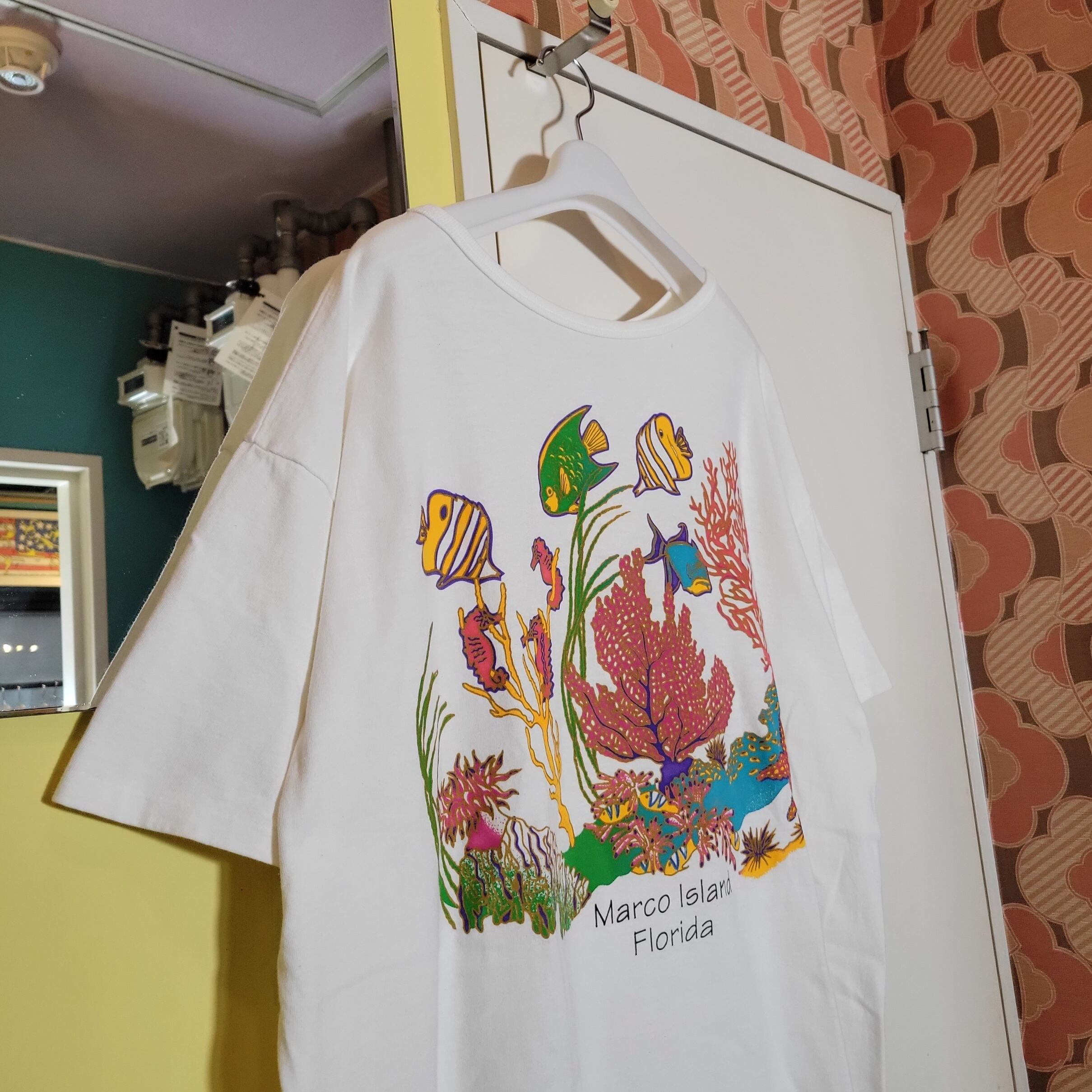 色味は、ホワイト×イエロー×ブルー×グリーン×レッド。悠々と泳ぐお魚さんたち。熱帯魚って言うのはなんでこんなにカラフルで可愛いのだろうか。暑い夏には海に想いを馳せて涼んでください。