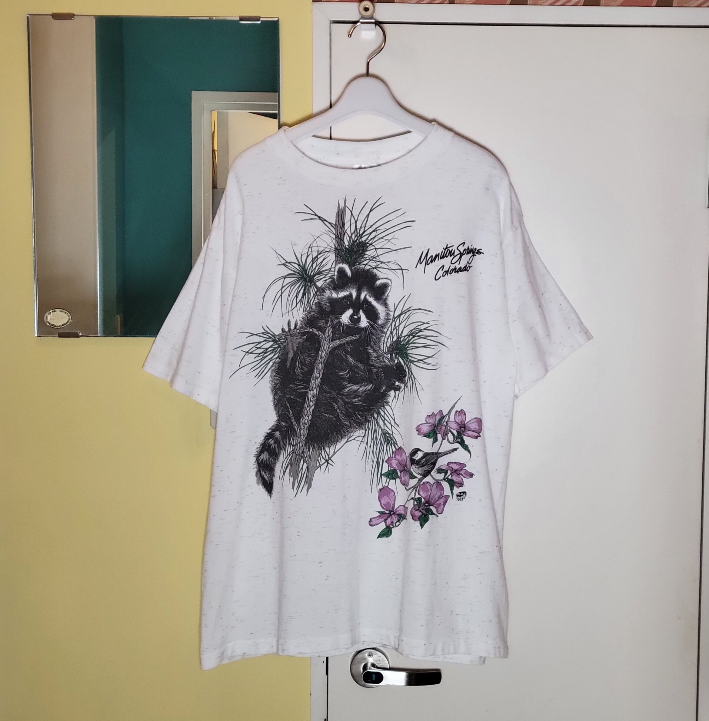 色味は、ホワイト×ピンク×グリーン×グレー×ブラック。完全にこっちを見てます。キョトン顔が可愛いアライグマちゃんは木登りがお得意。小鳥さんともなかよしです。ただのホワイトではなくちょっぴりアクセントのはいったベースカラーも◎