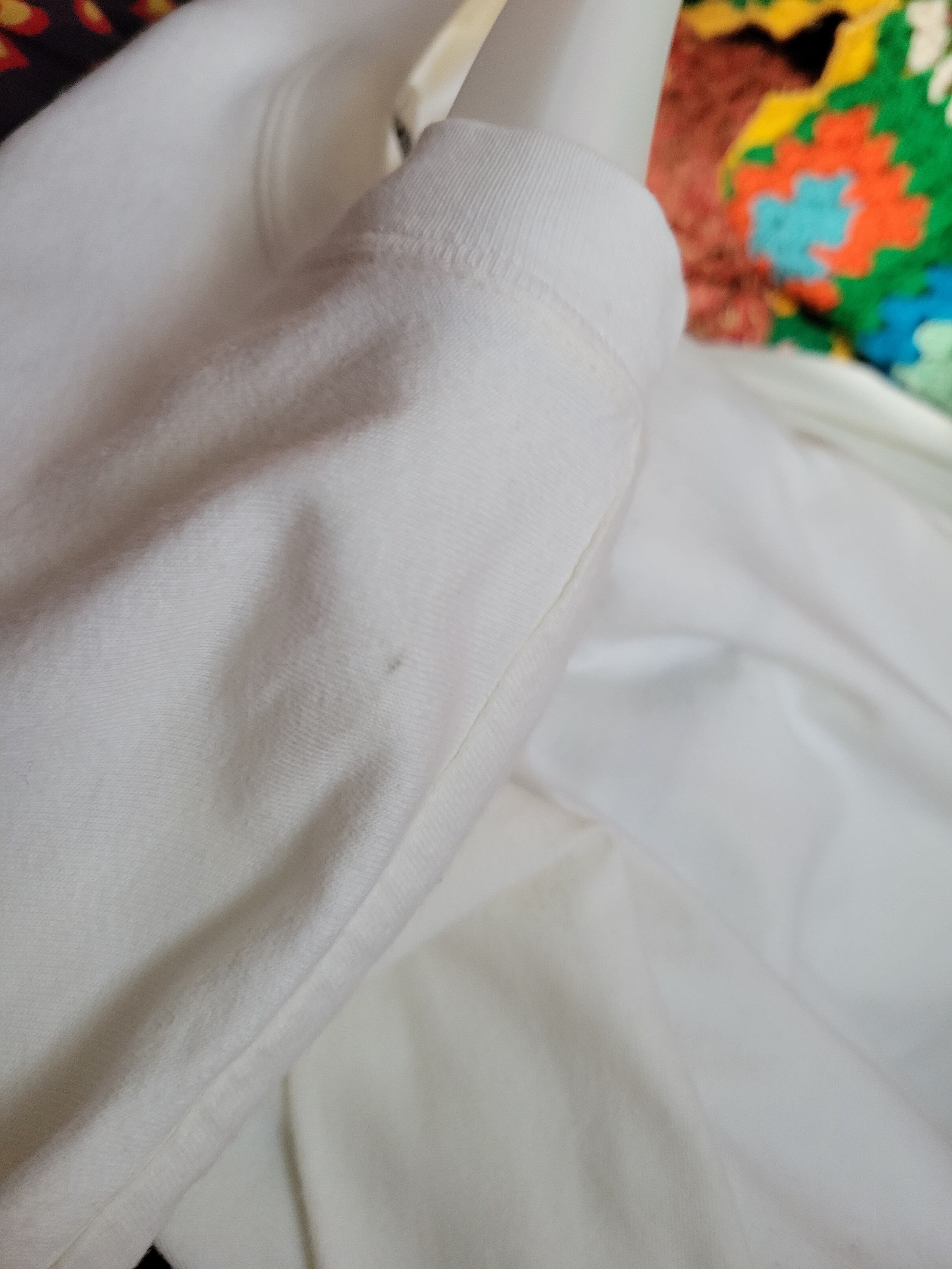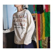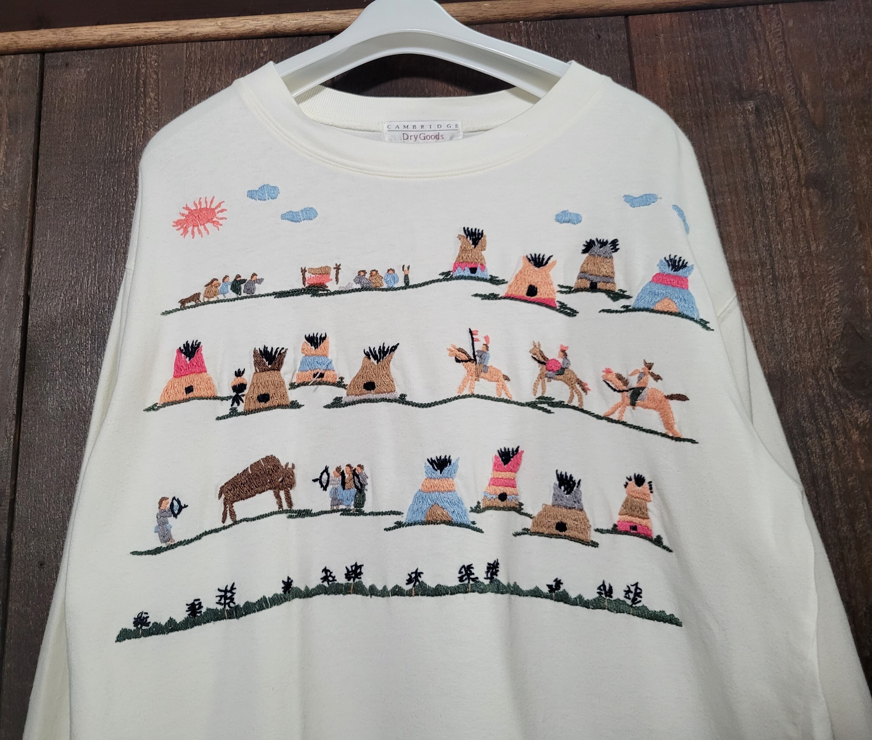 色味は、ホワイト×ピンク×ブラウン×ブルー×グリーン。どこかの民俗が、刺繍でデザインされています。古着でロンティー探すのってなかなか難しいですけどやはりユニークなものは手に取ってしまいますね。コミカルな雰囲気に愛着がわきます。