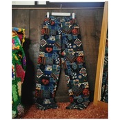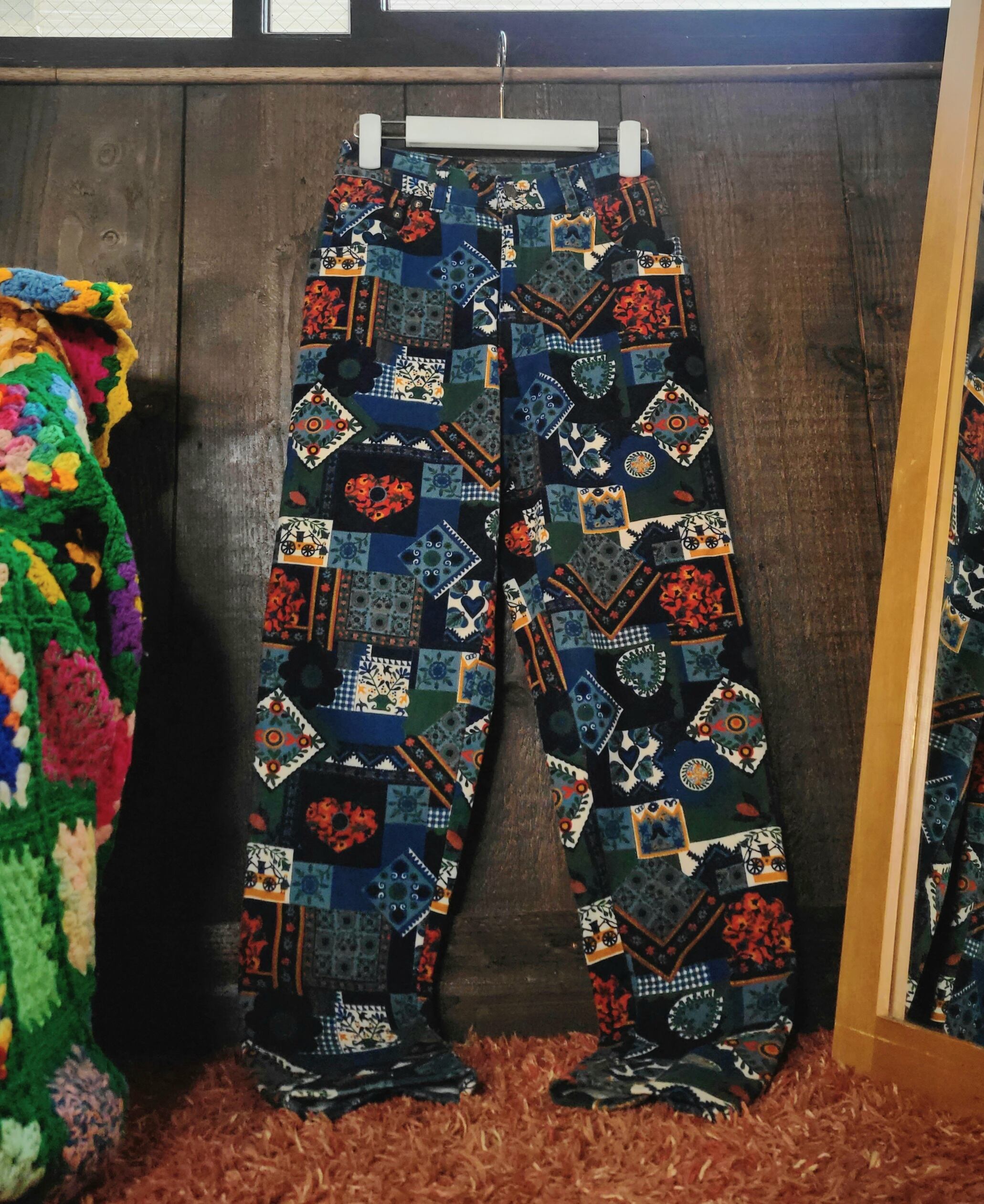 色味は、ネイビー×レッド×ホワイトなどなど。パッチワーク風のテキスタイルがほっこりかわいい一着。テーパードしたシルエットでスッキリとしているのも特徴的◎