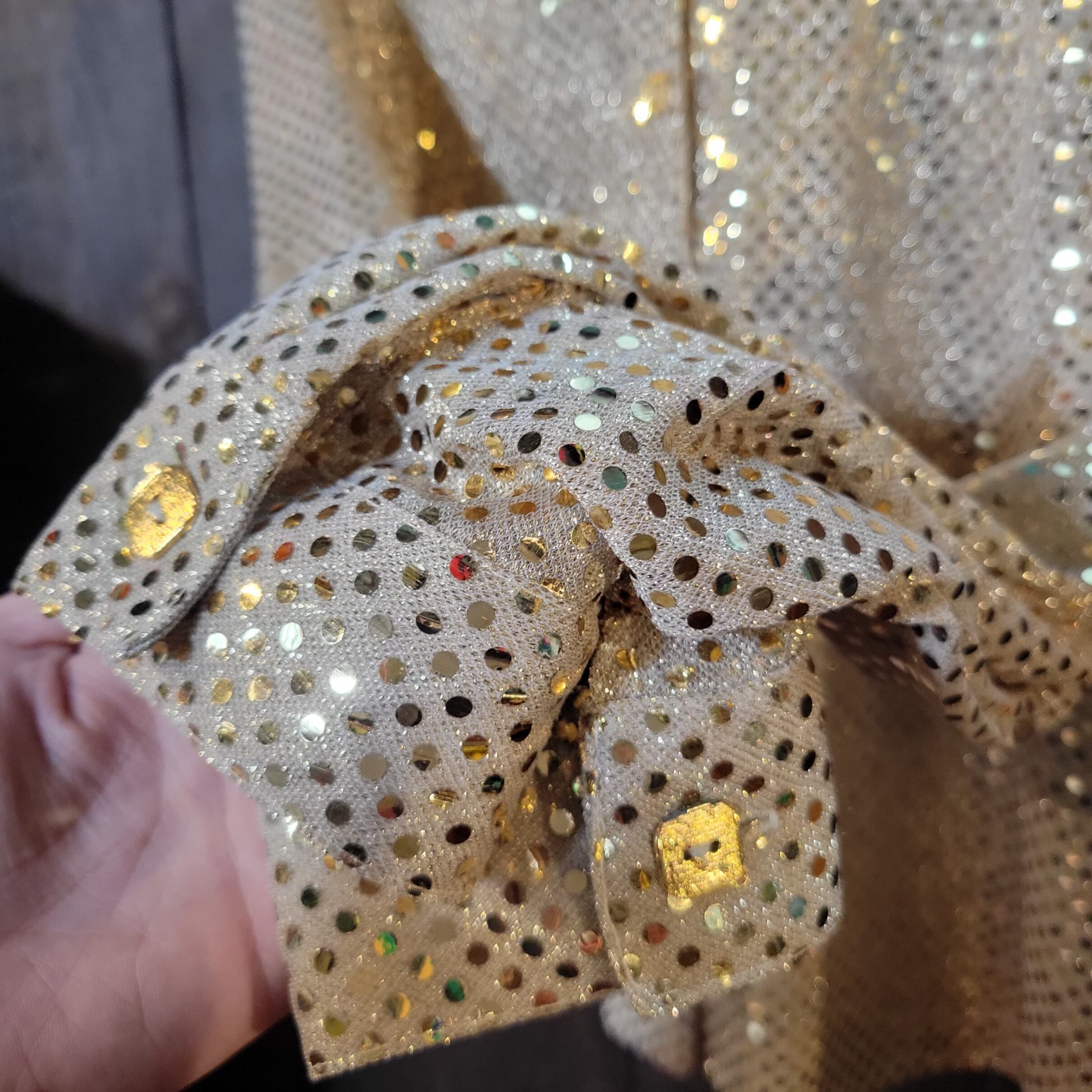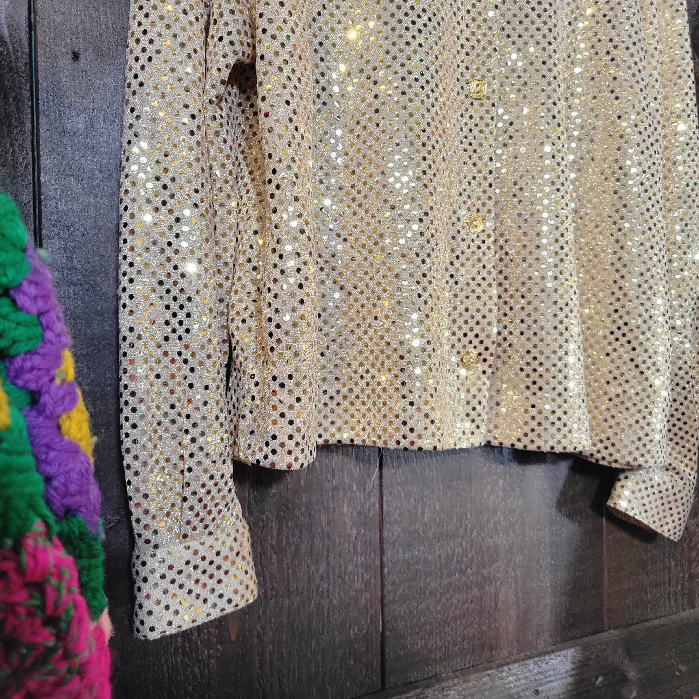 色味は、ゴールド。ギラっギラです。とっても華やかな雰囲気が魅力的。潔く一枚でドカン!と勝負して誰よりも煌めくもよし。これからの時期であればジャケットからチラ見せもカッコいいし、冬にはシャギーニットやモヘアの中に仕込んでレイヤードも絶対に可愛い。