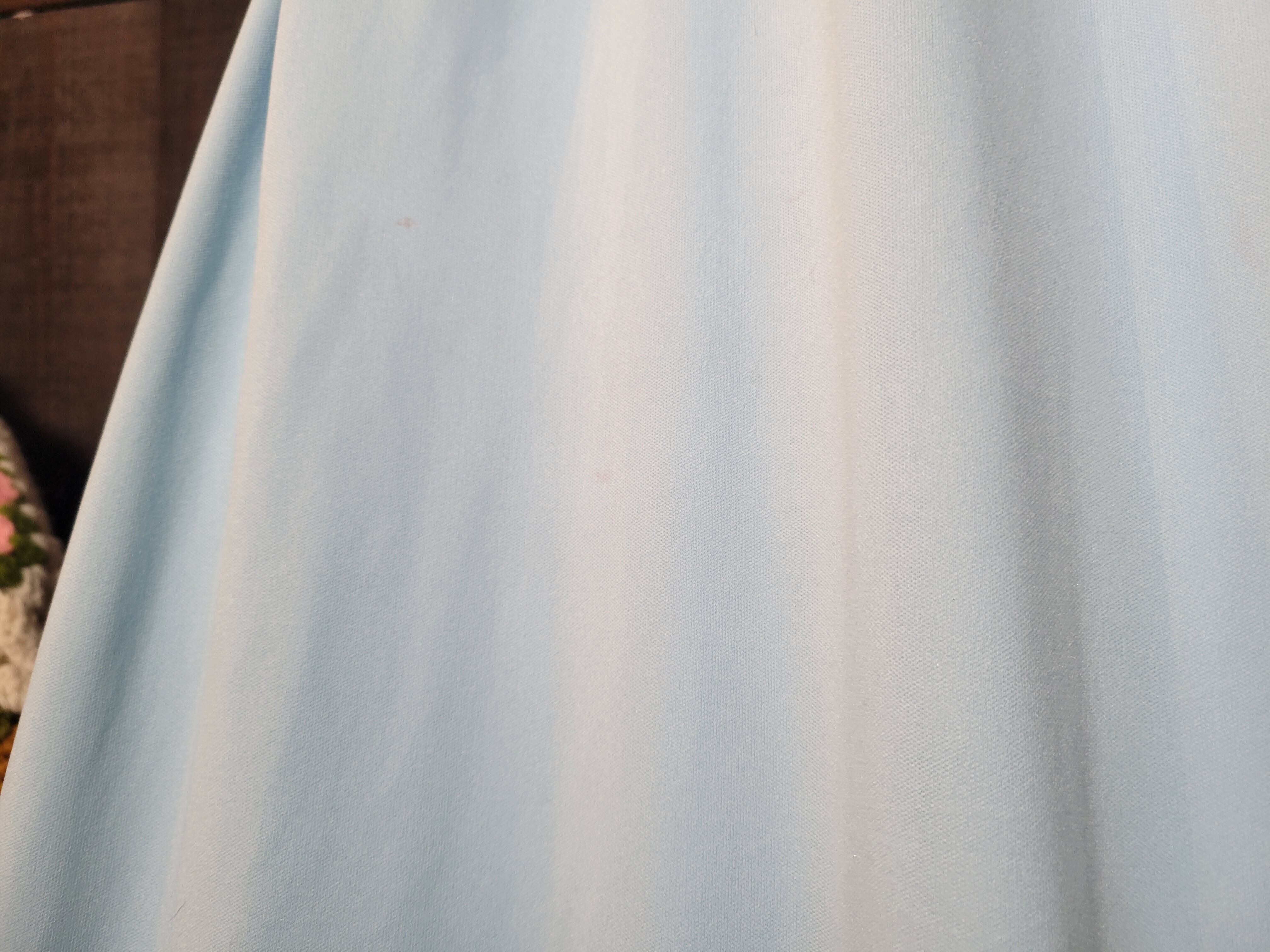 色味は、アイシーブルー×ホワイト。スッキリとしたシルエットですが、胸元の重なる細いプリーツのラッフル部分はボリュームがなんとも素敵。優しい色味が爽やか。肩紐部分が細いデザインなのでインナーのキャミやトップスのレイヤードも楽しめそうです。