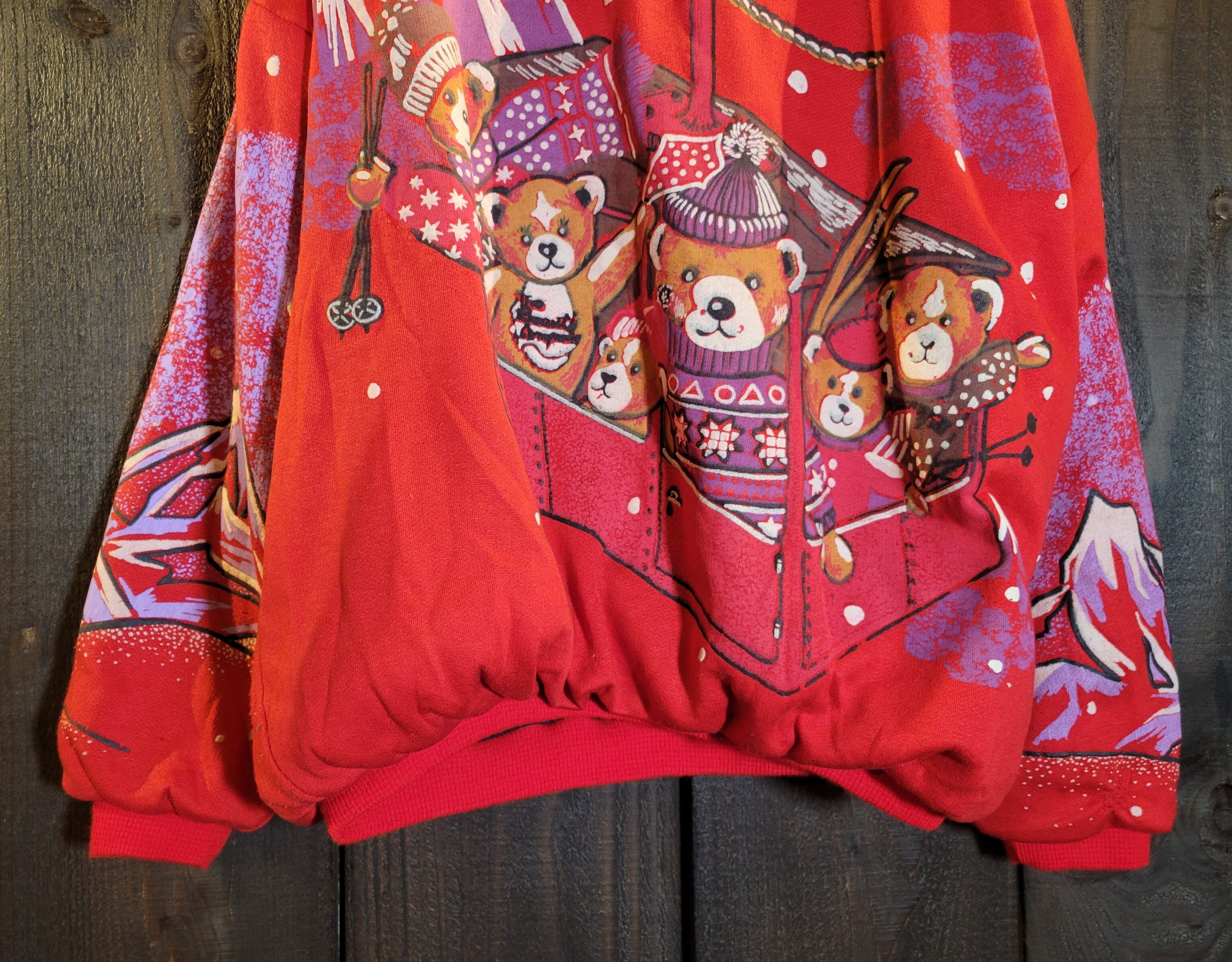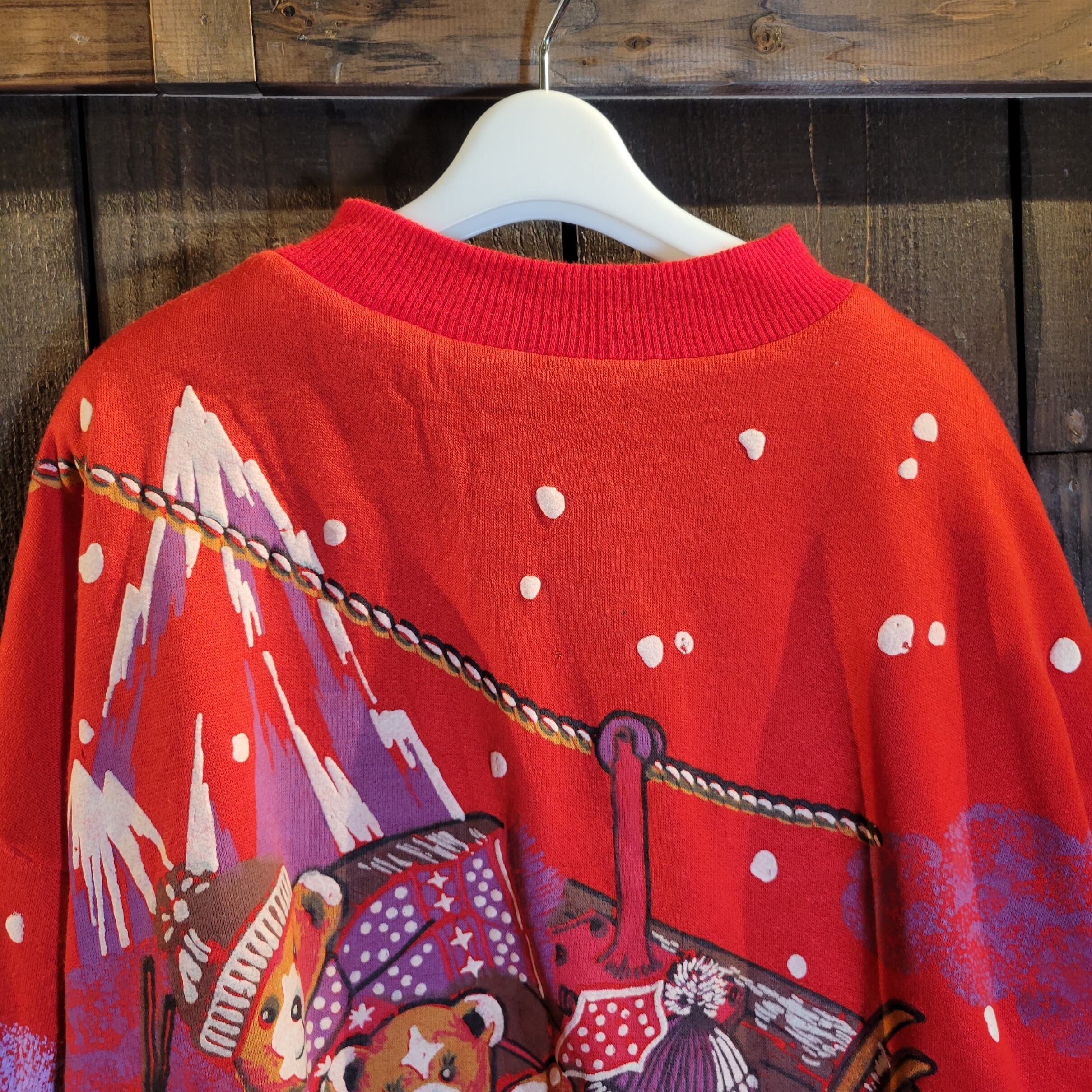 中綿の入ったスウェットです。ゴンドラにのるわいわいとしたくまちゃんたちがとってもキュート。背面も同じくプリントされていて後ろを向けばいっしょにくまちゃんたちも後ろを向きます。