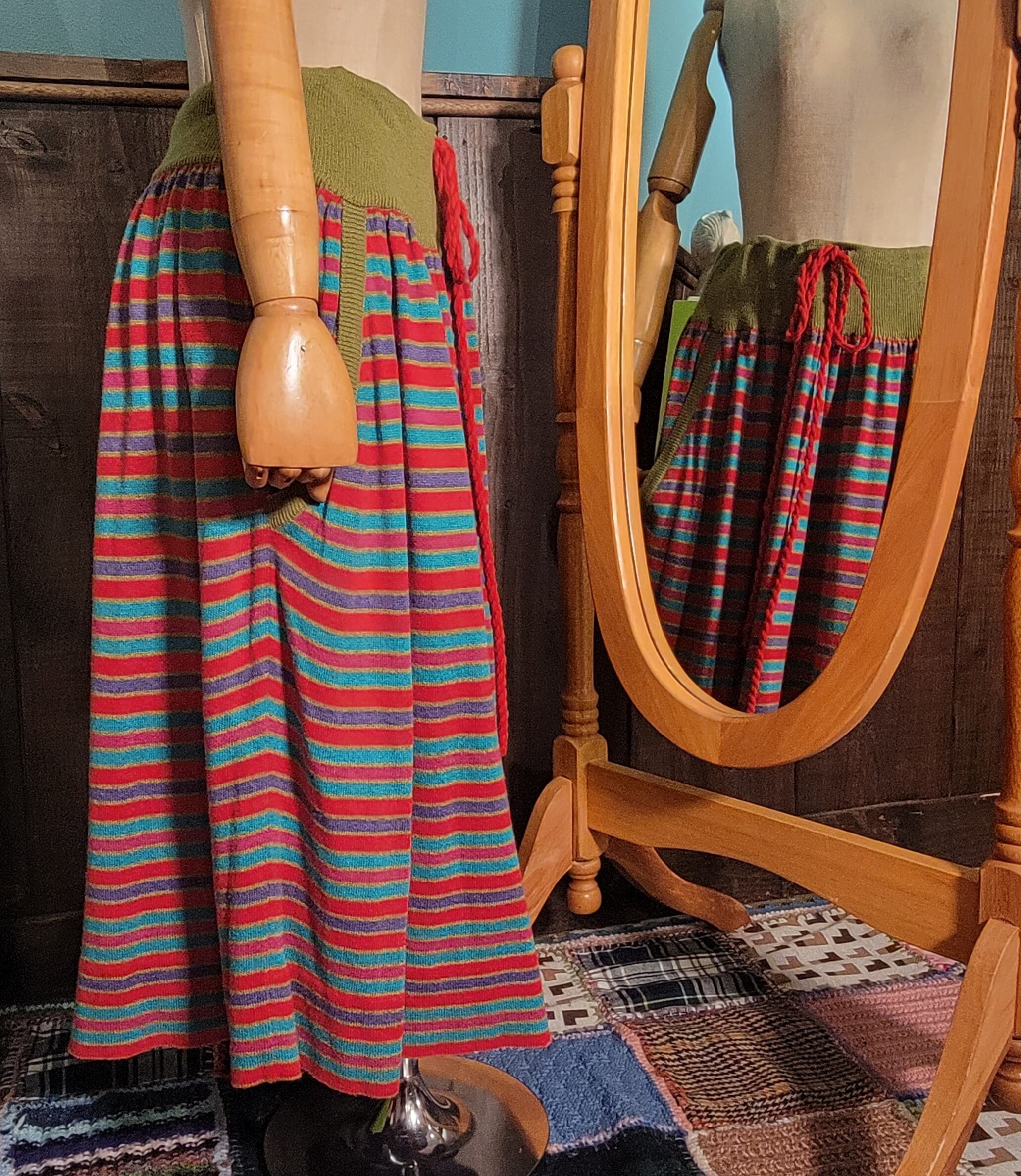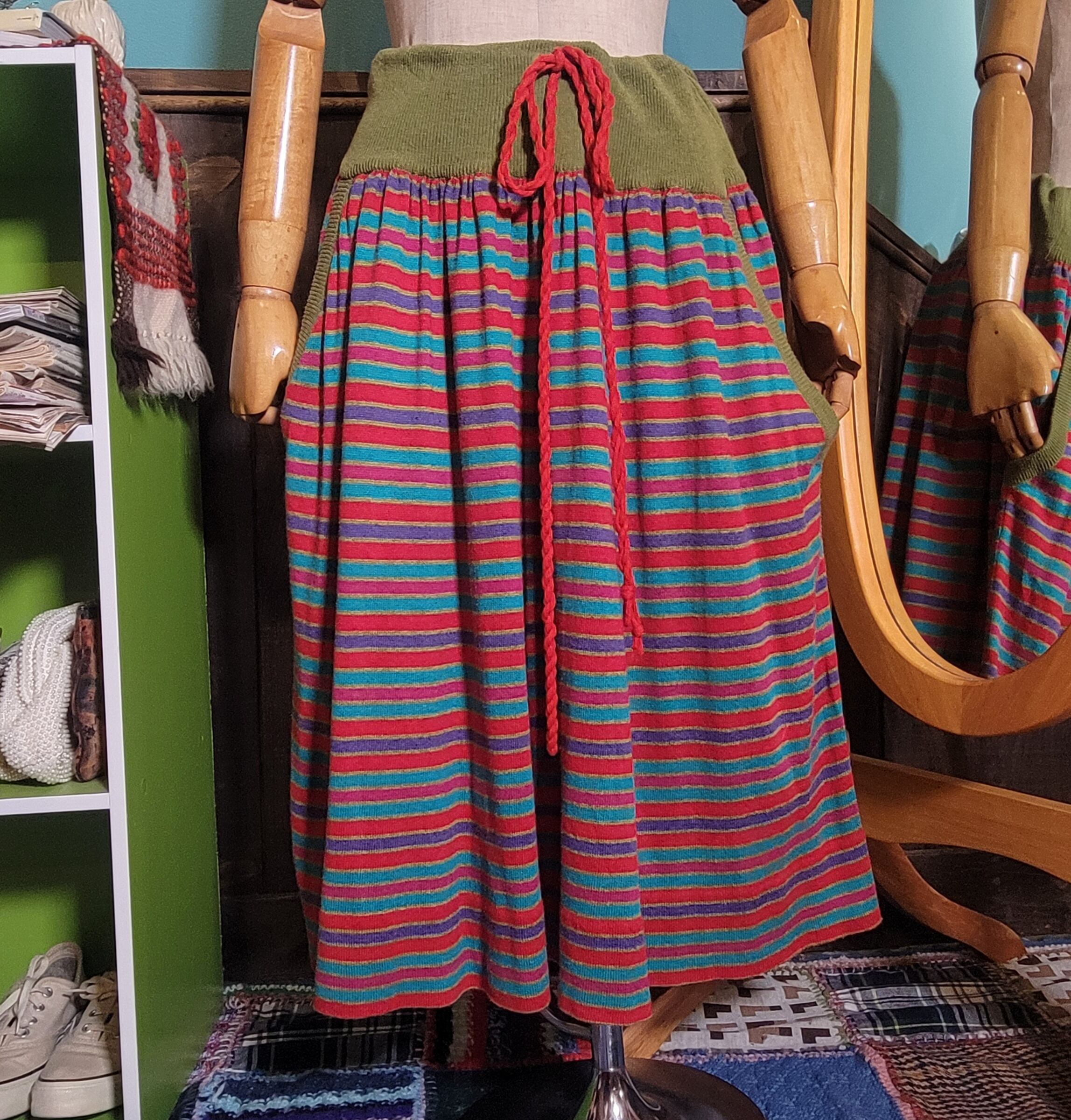 今回はスウェットパンツのうえにオン!賑やかなニットと合わせて思い切り古着らしい着こなしです。