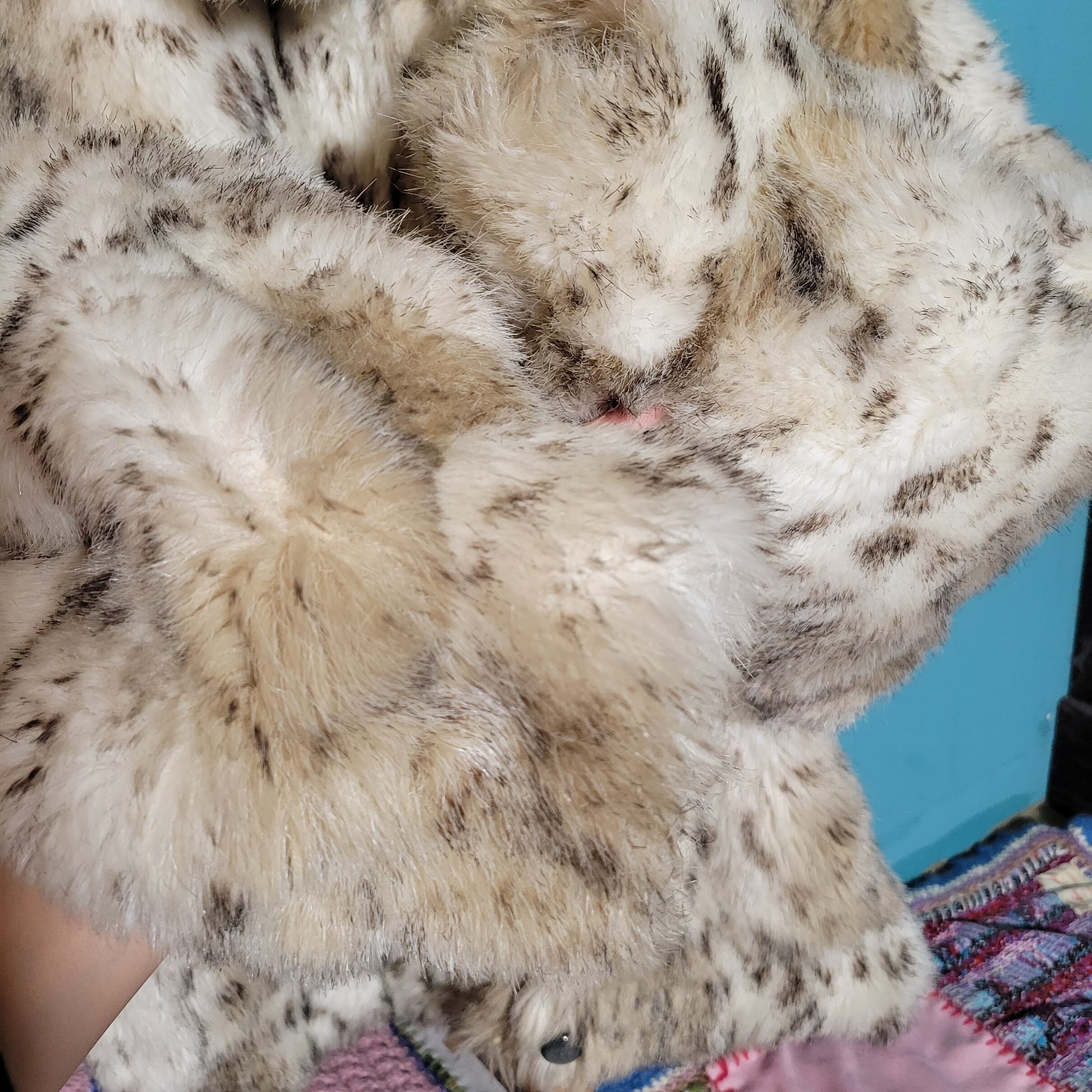 大きめのアーム部分で中にニットも楽々着込めます。毛足の長いファーを掻き分けるとツルッと不思議な艶がかわいいボタン。腰が隠れるぐらいのほどよい丈感。ジャケットタイプだからこそ、ゴージャスになりすぎずに着られるのも魅力的です。
