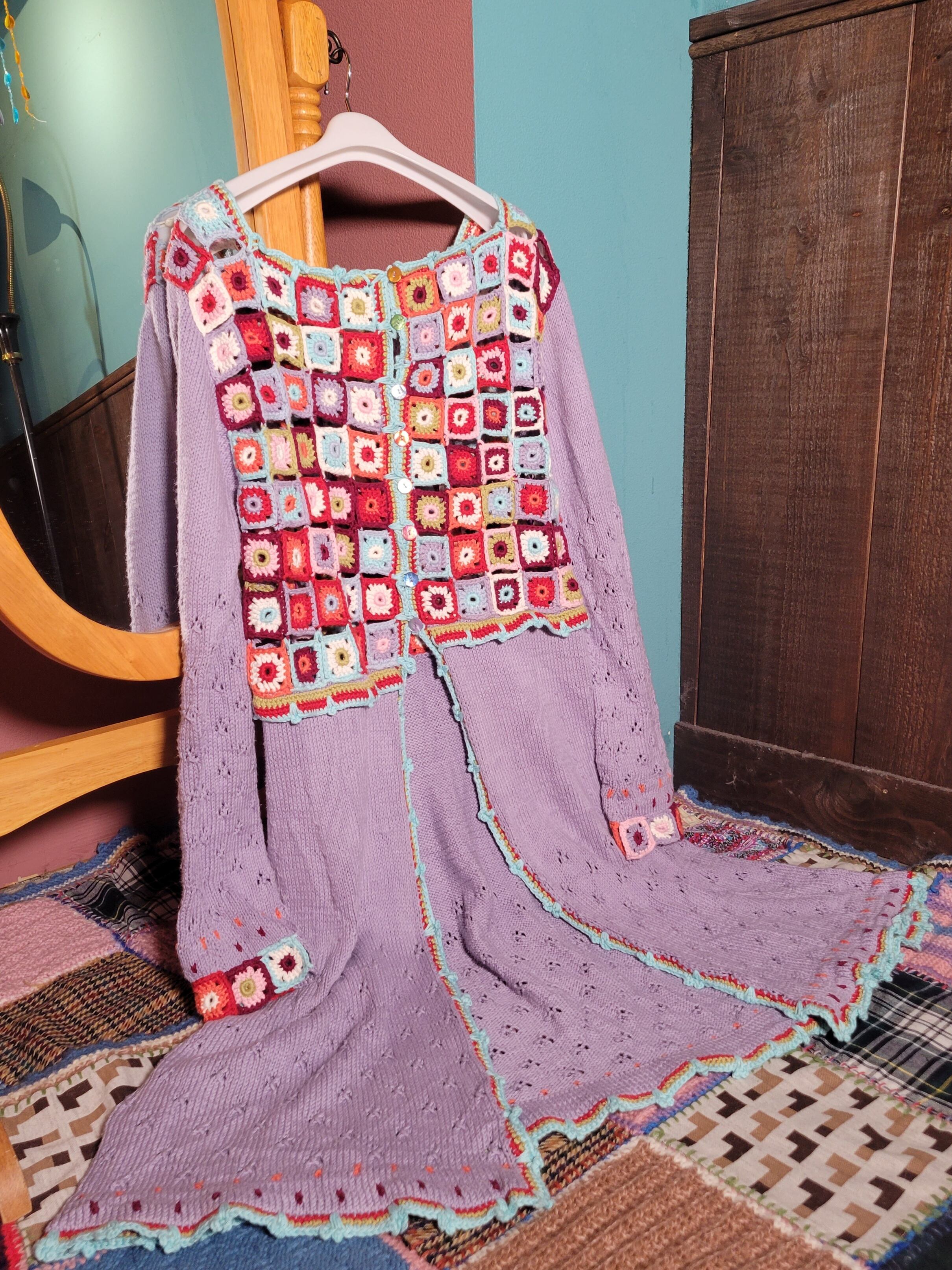 GRANNY SQUARE KNIT LONG CARDIGAN