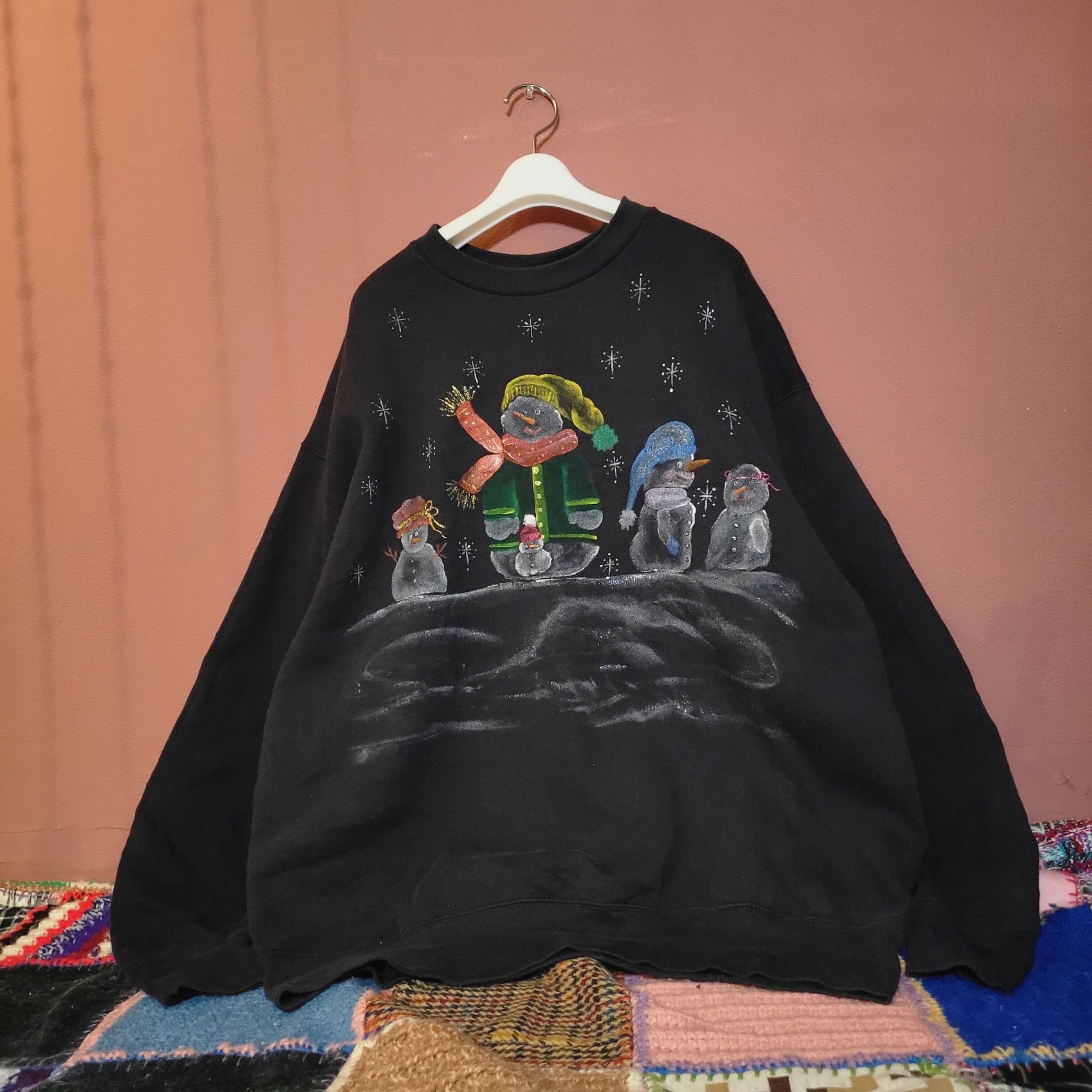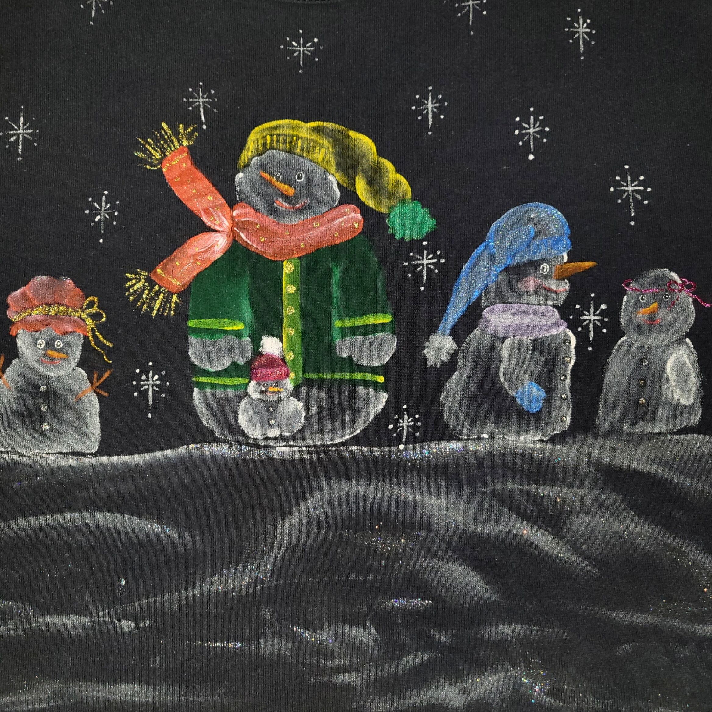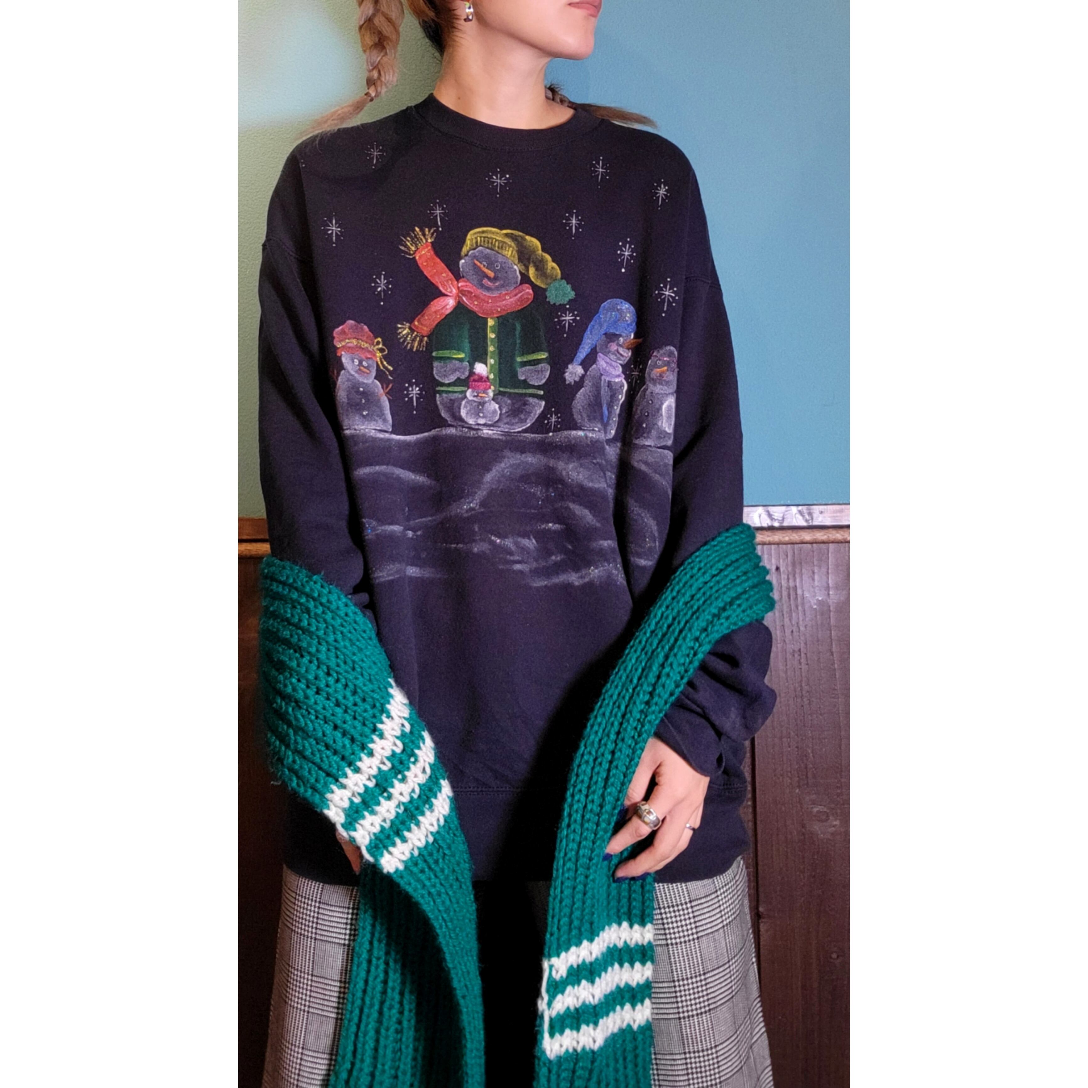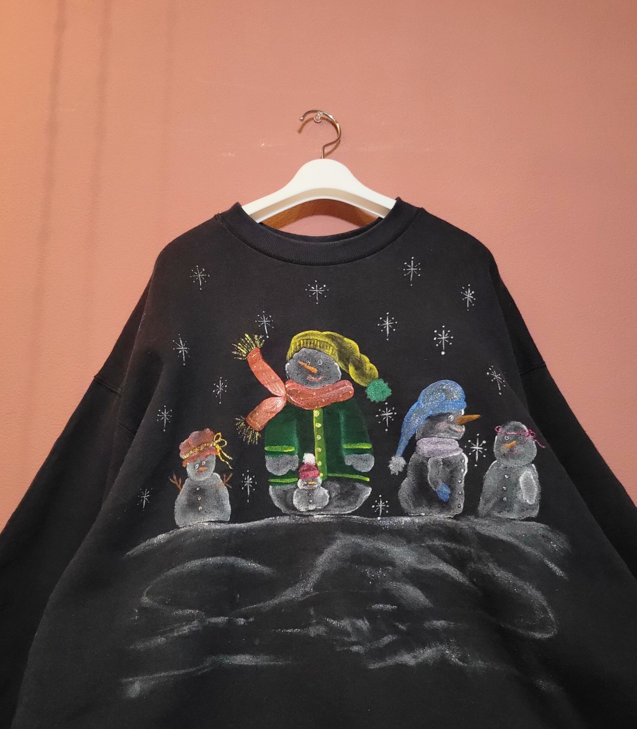 ホワホワとした優しい冬にうまれた雪だるまさんたちのプリント。それぞれことなる表情で佇んでいます。絶妙なタッチと、キラキラと光るラメがいいです。