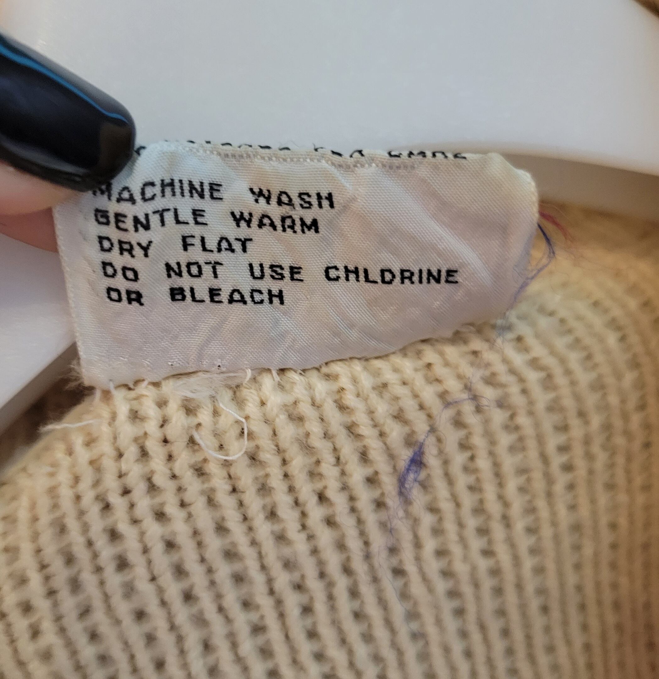 アクリルでチクチクせずに優しく着られます。ウールのシャツやスウェットが入れ込めるサイズ感。ウッドボタンで暖かみある雰囲気、サイズの異なるぽけっとが4つ。