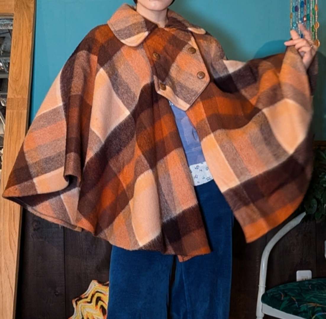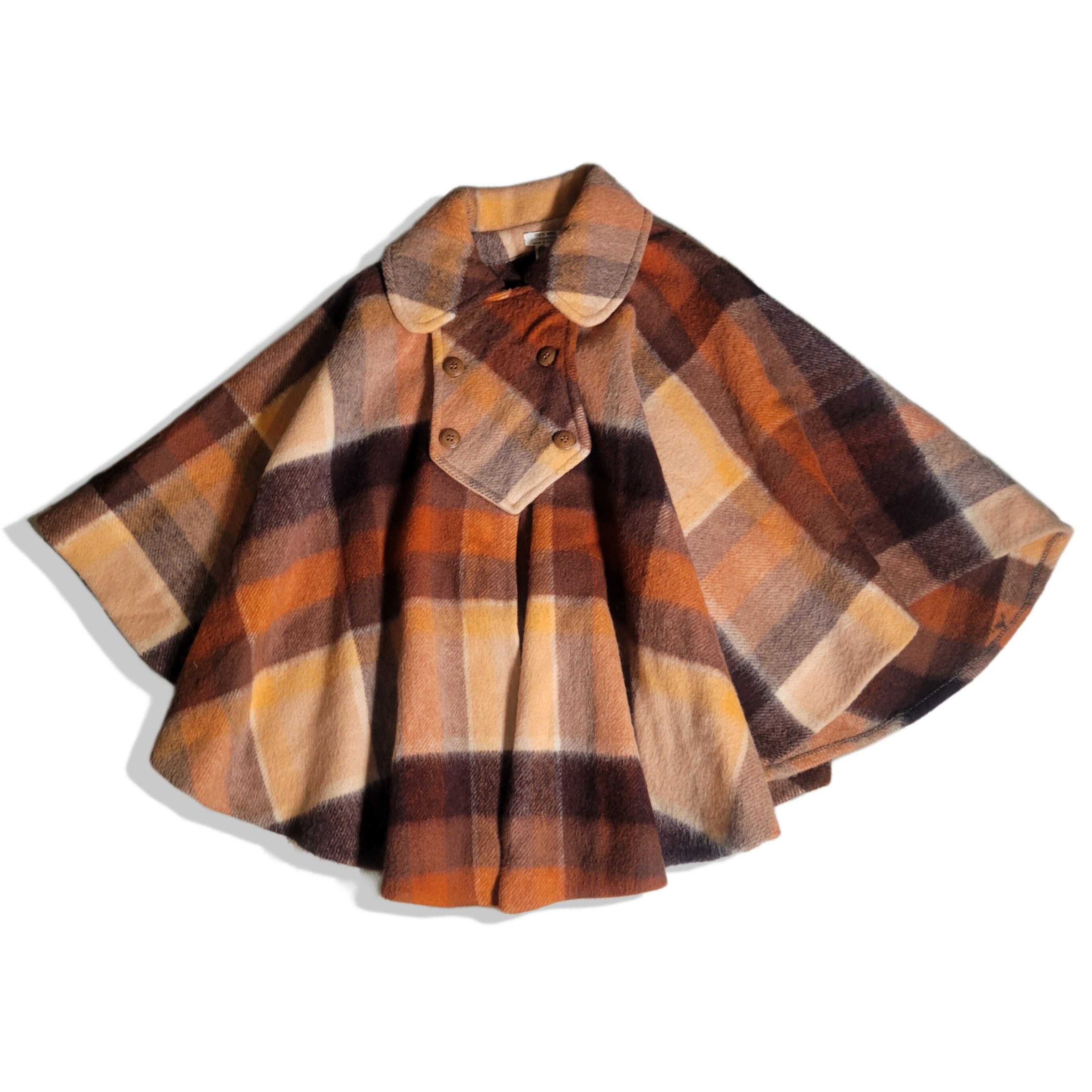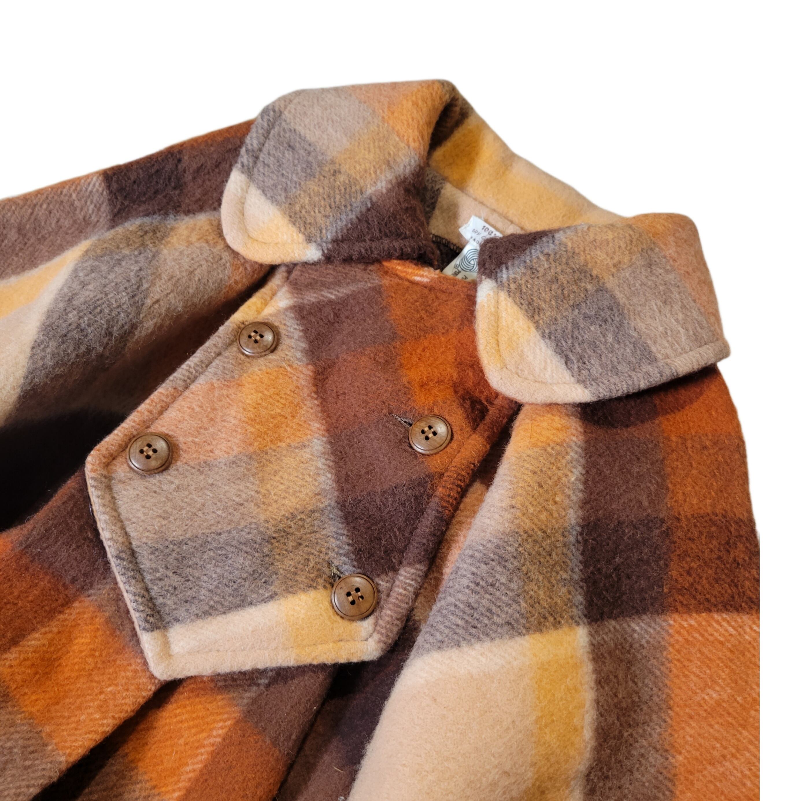 色味は、ブラウン×オレンジ×テラコッタ。たっぷりとしたウールのチェックからなるドレープ感が美しい。