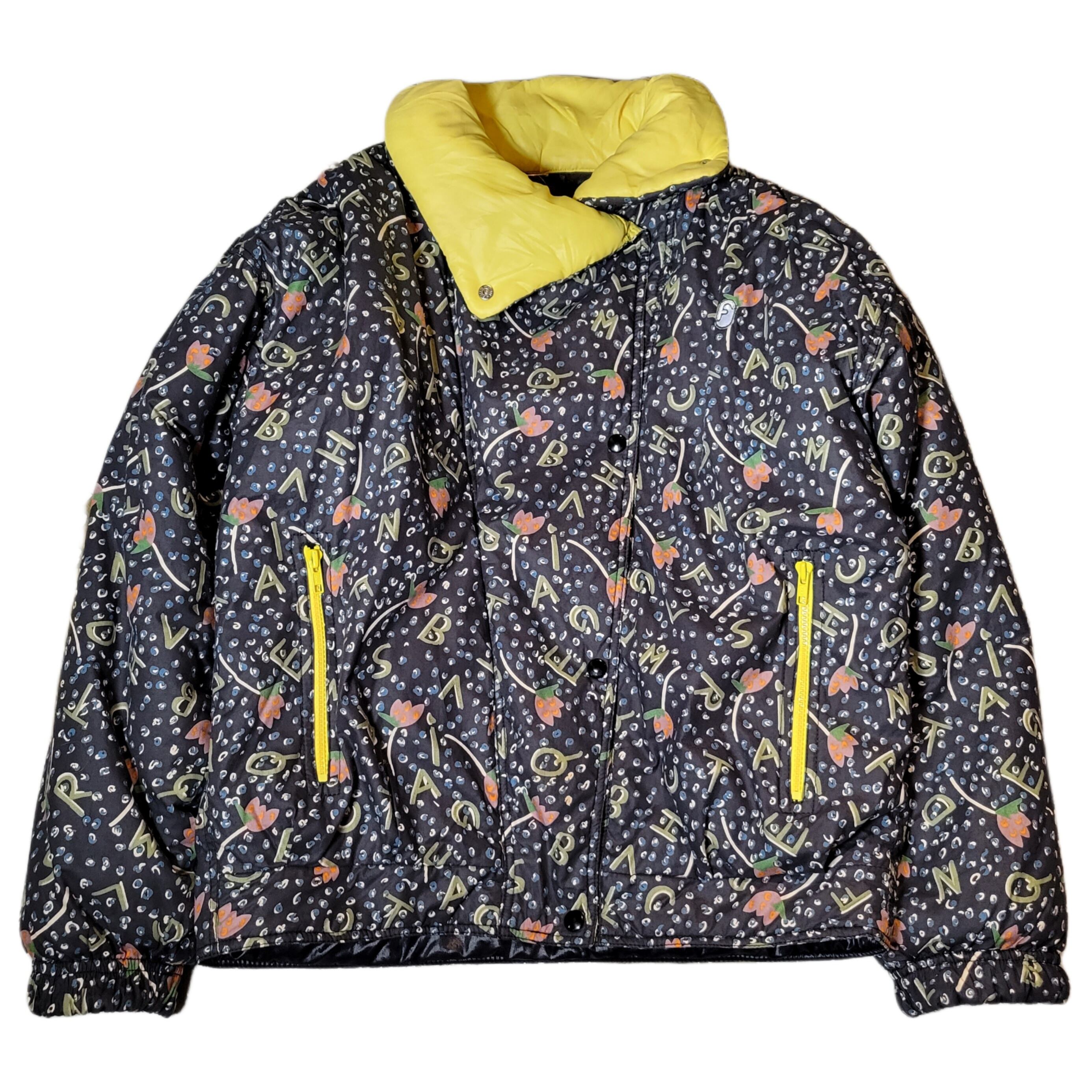 もっちりした中綿のぼりゅーむ感と総柄のアルファベットとお花がなんだか可愛らしい1着。