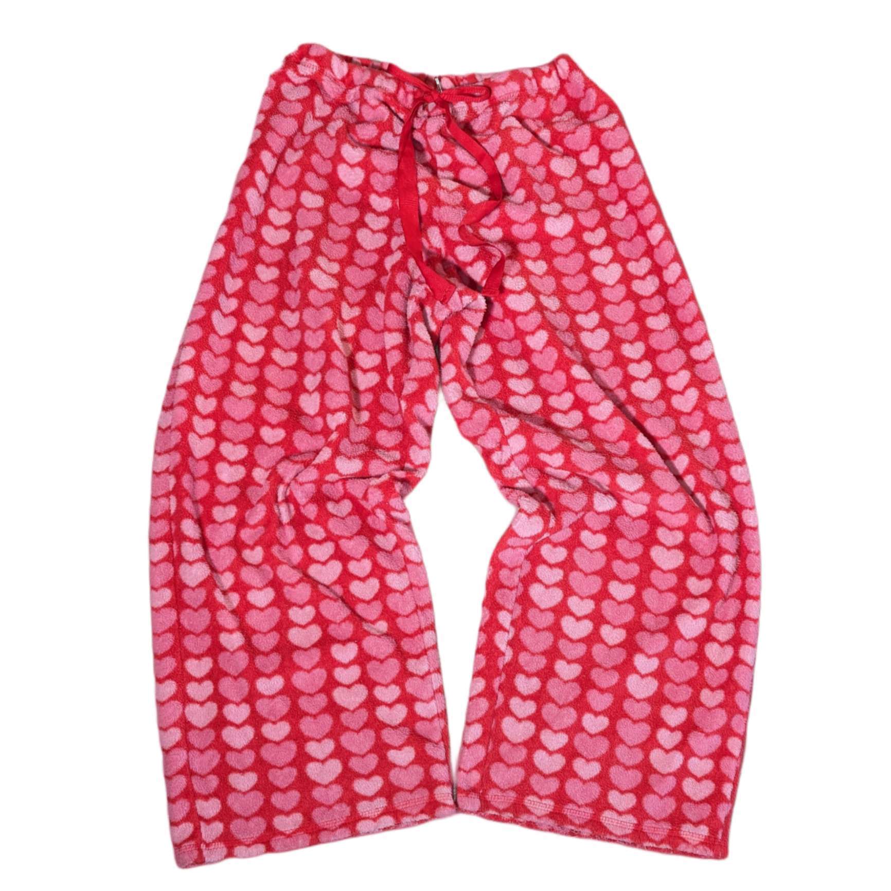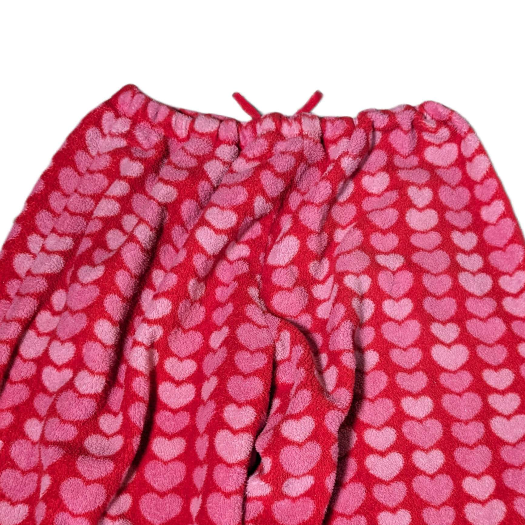 ハートがたくさん並ぶラブリーなテキスタイルが可愛い。ウエストのリボンでサイズ調整が可能。また、リボンになっていることによってポイントができるため、リラックス感が少し半減されるのも個人的には嬉しいポイントです。
