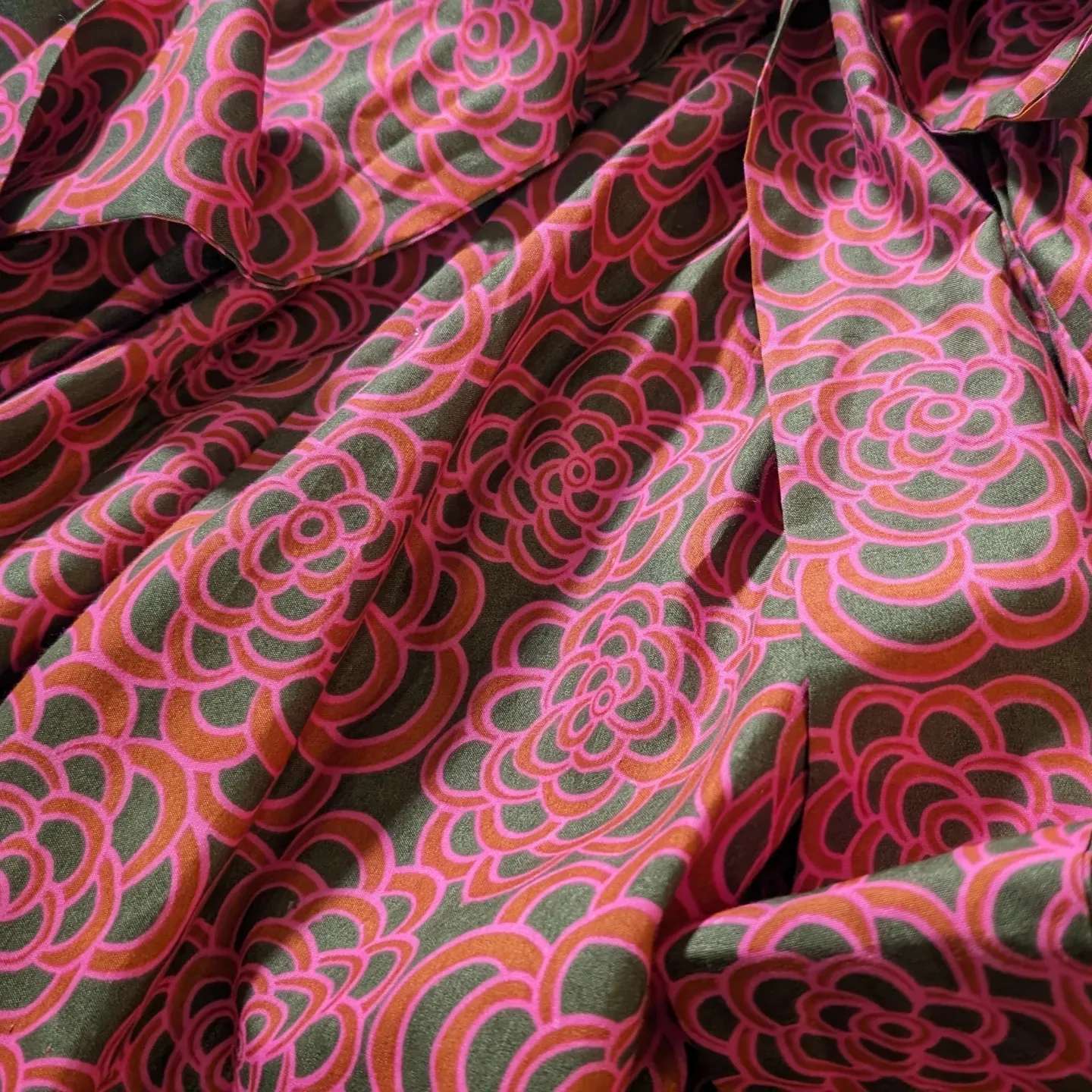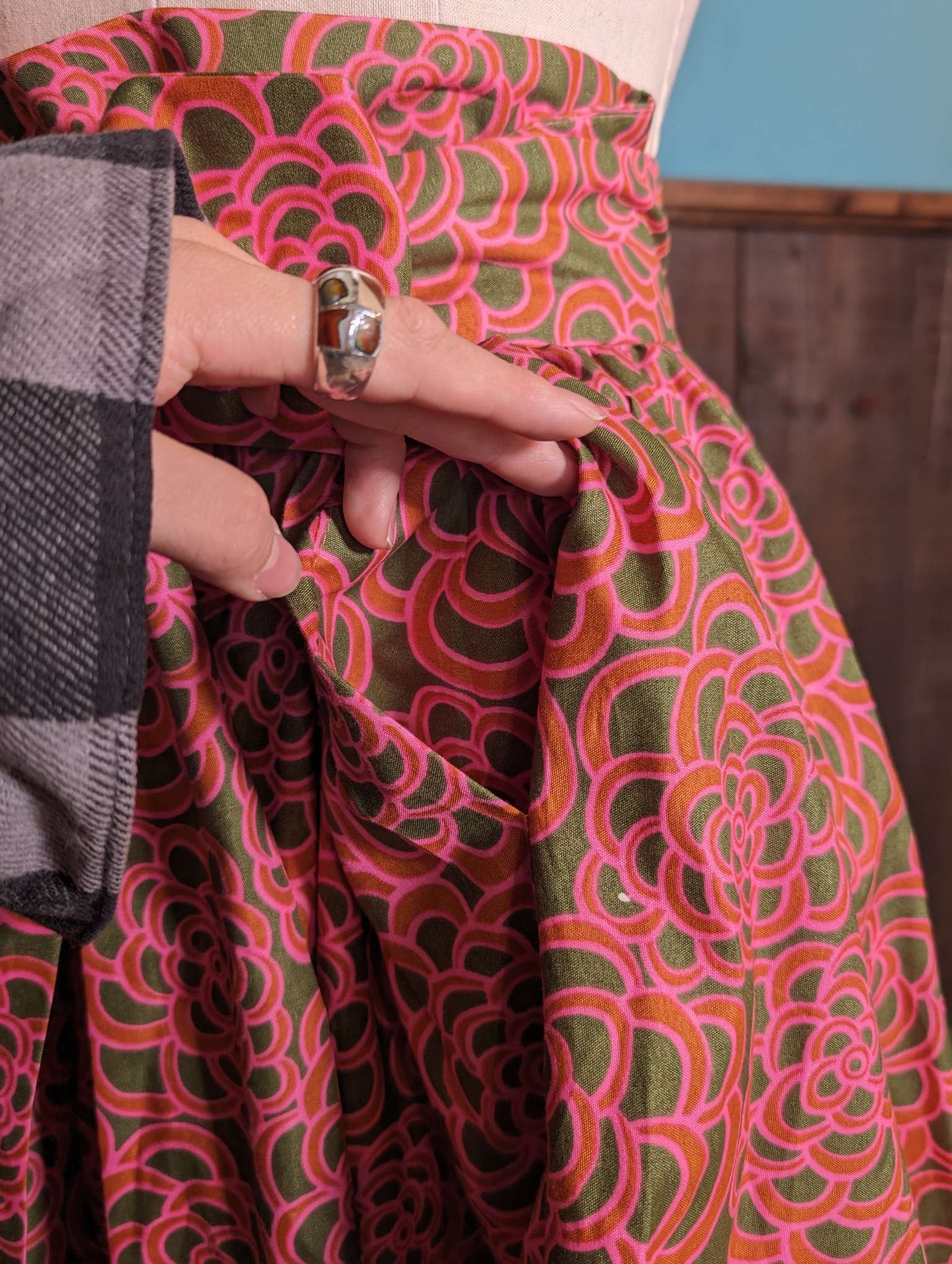 カーキにピンクのお花がらがたーーーーっぷりプリントされたスカート。膝上ちょいとミニな丈が可愛いです。