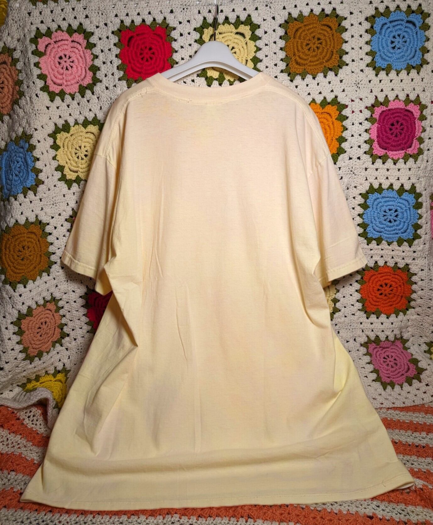サイズは大きめゆったりサイズでズルズルッと着られます。わかりにくいですが薄っすらとまだらにイエロー染められたボディが可愛いです。