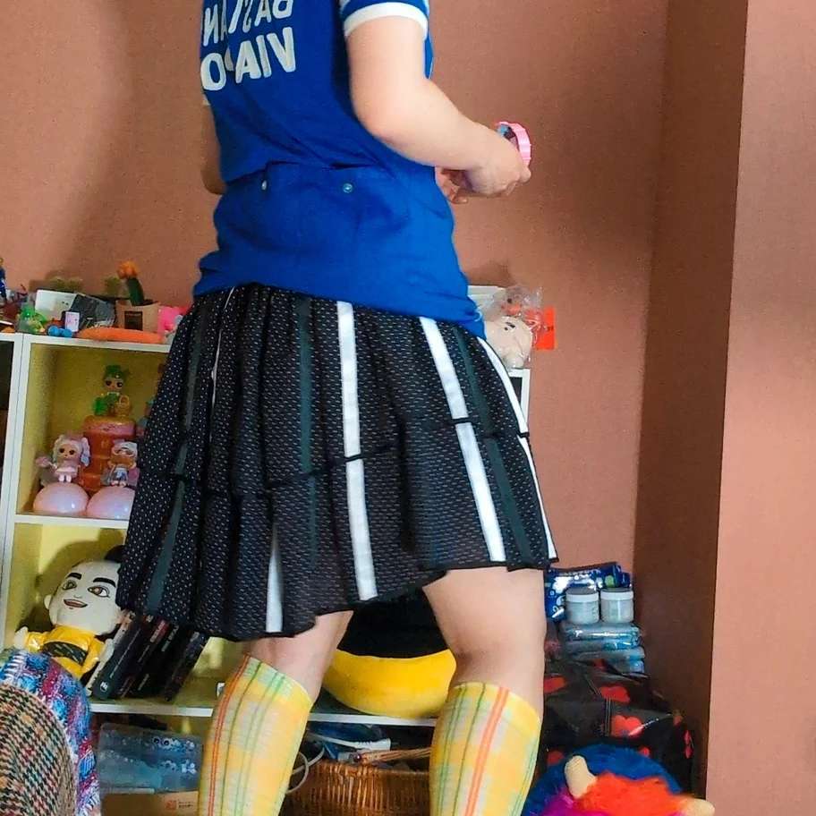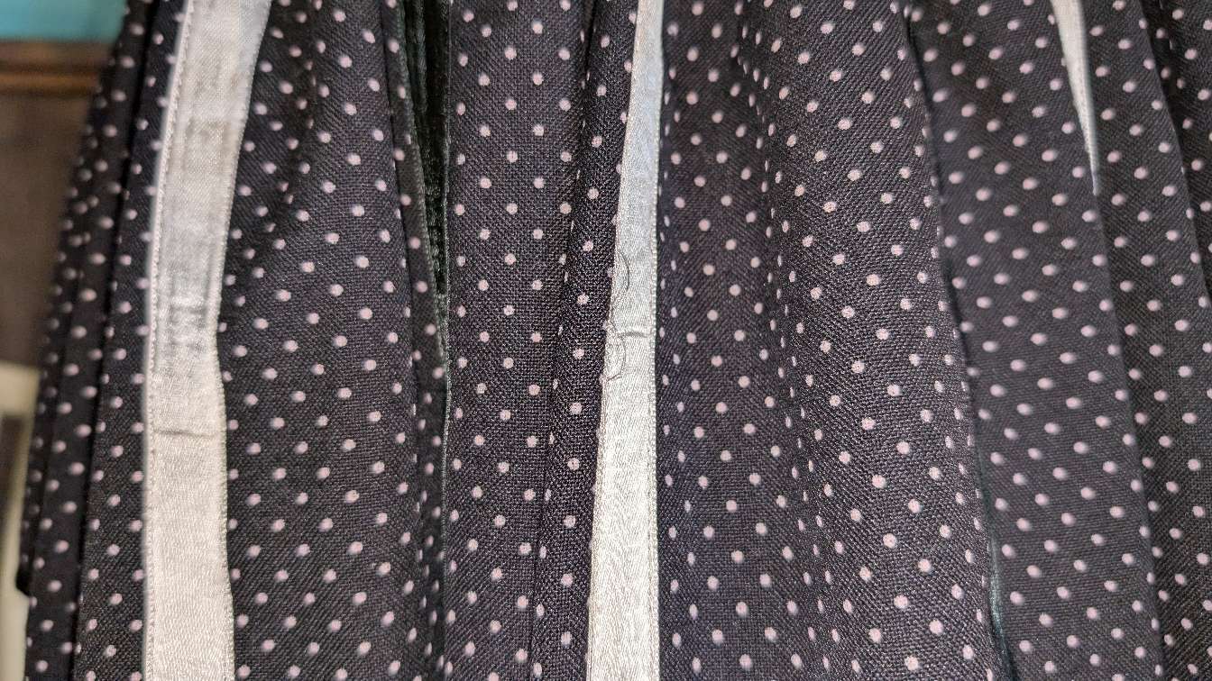 細かやなピンクのドットに、モノトーンのカラーテープがツルッと映えます。ティアードになっていてふんわりと可愛らしいボリューム感が魅力的です。