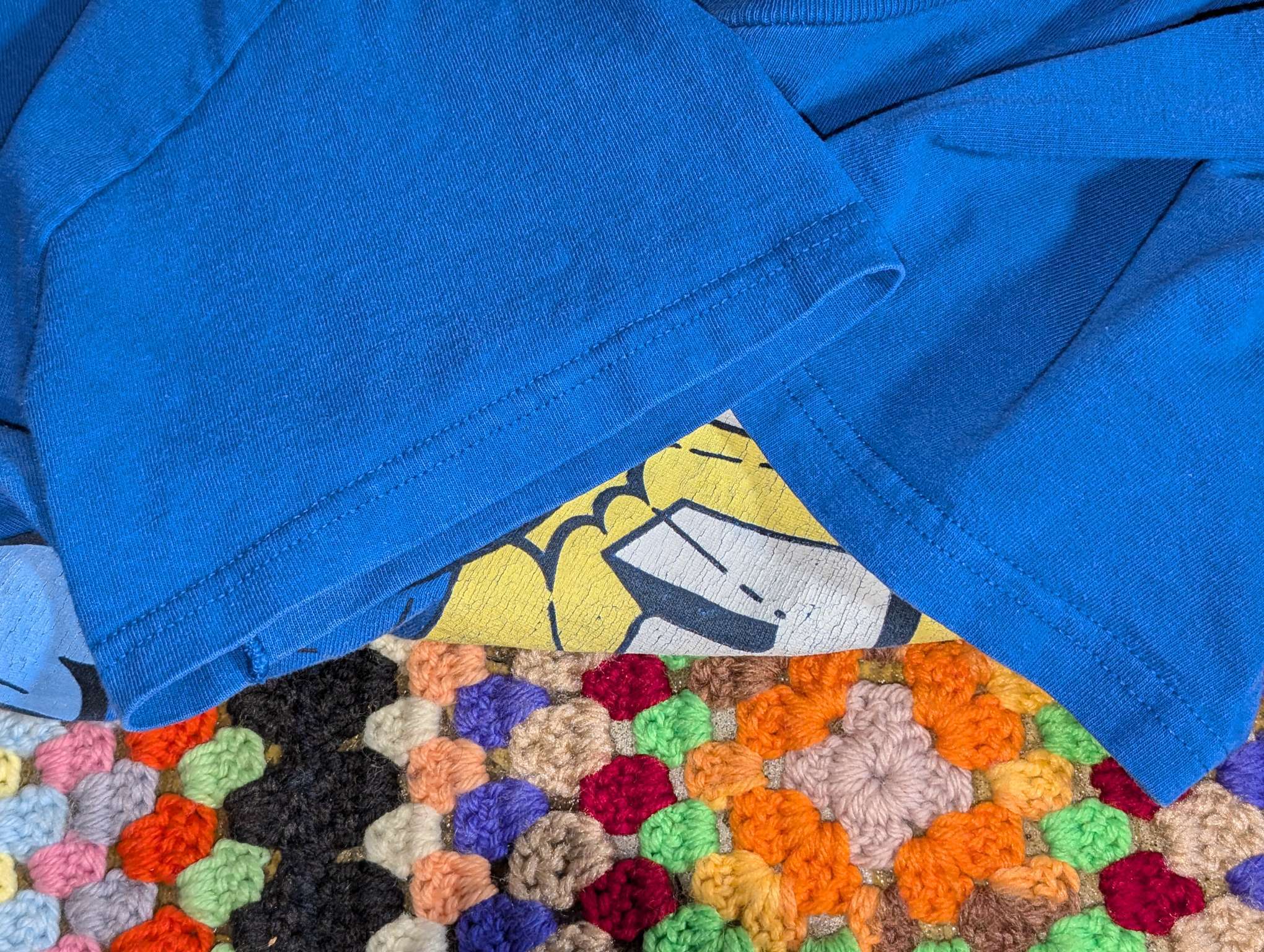 鮮やかなブルーに、フロントの堂々としたマリオがとってもコミカルですね。ラフに着られるサイズ感で、さらっと一枚アクセントとして着るのにも圧巻の存在感です。