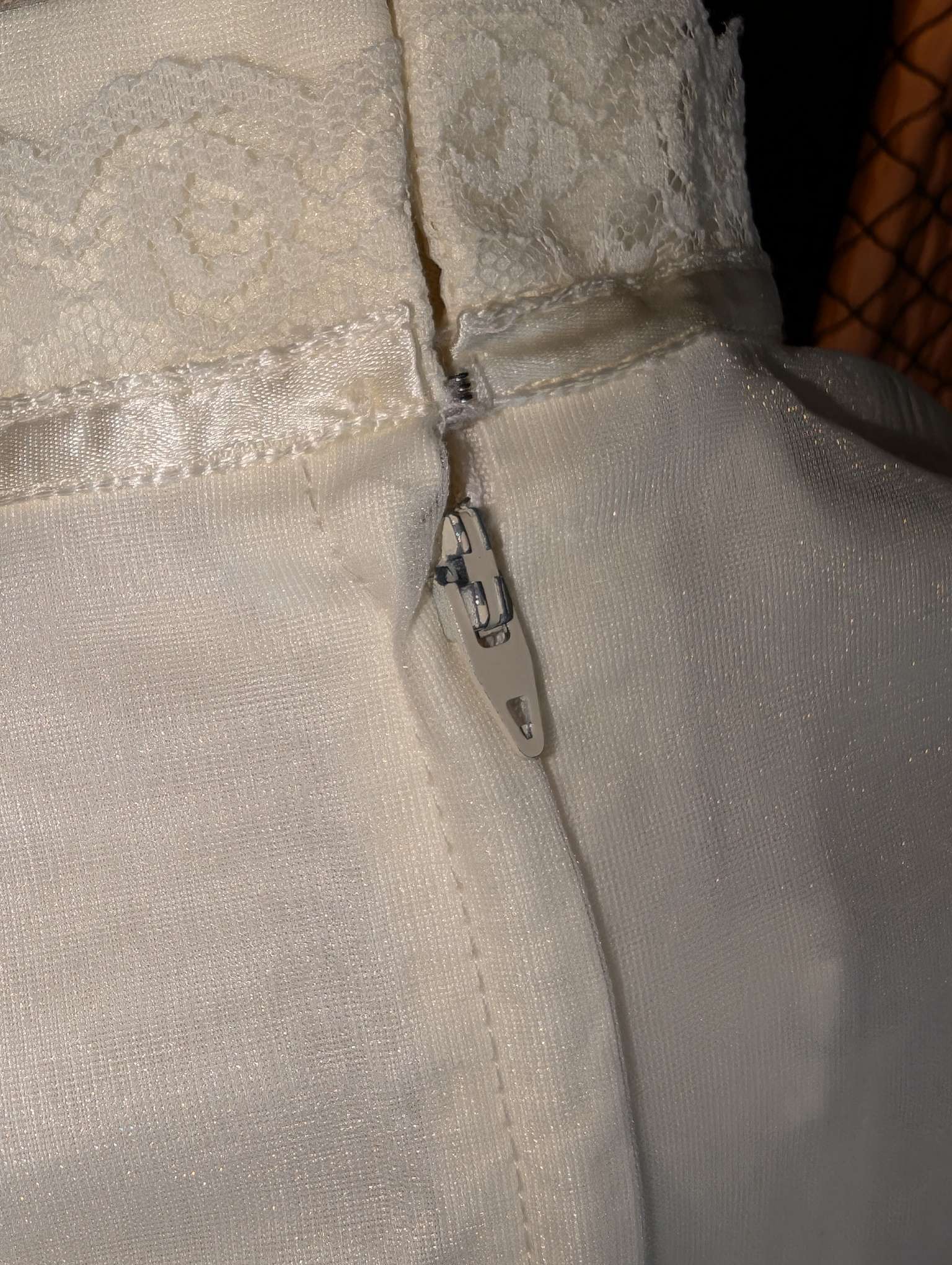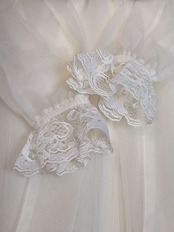 襟部分は立ち襟でスッキリとしつつも、首元からちらりと肌に透けるレース、ケープのようにふわりと重なる襟のデザイン、艶のあるテープ、上向きに付けられたウエストのレース。ディティールも最高です。