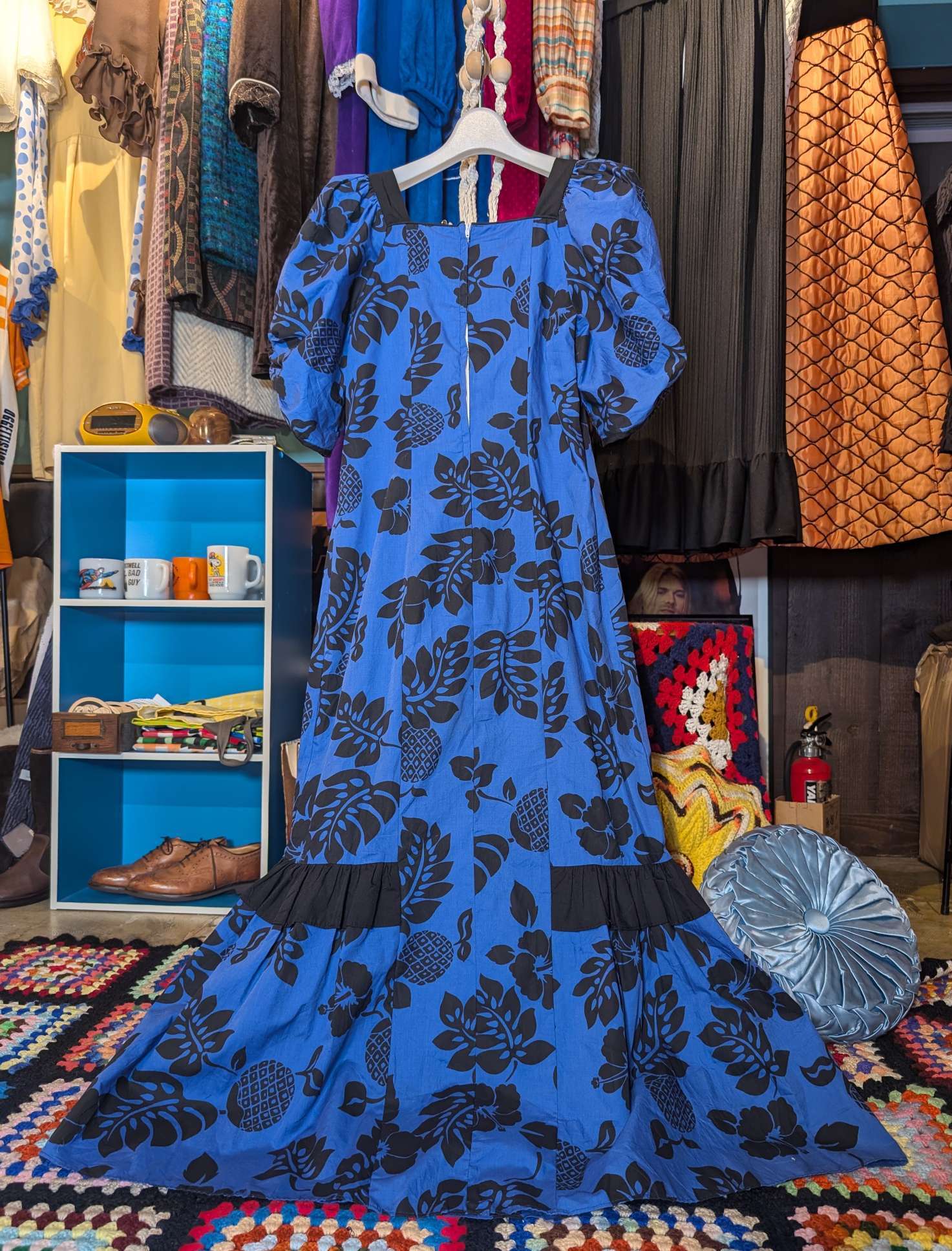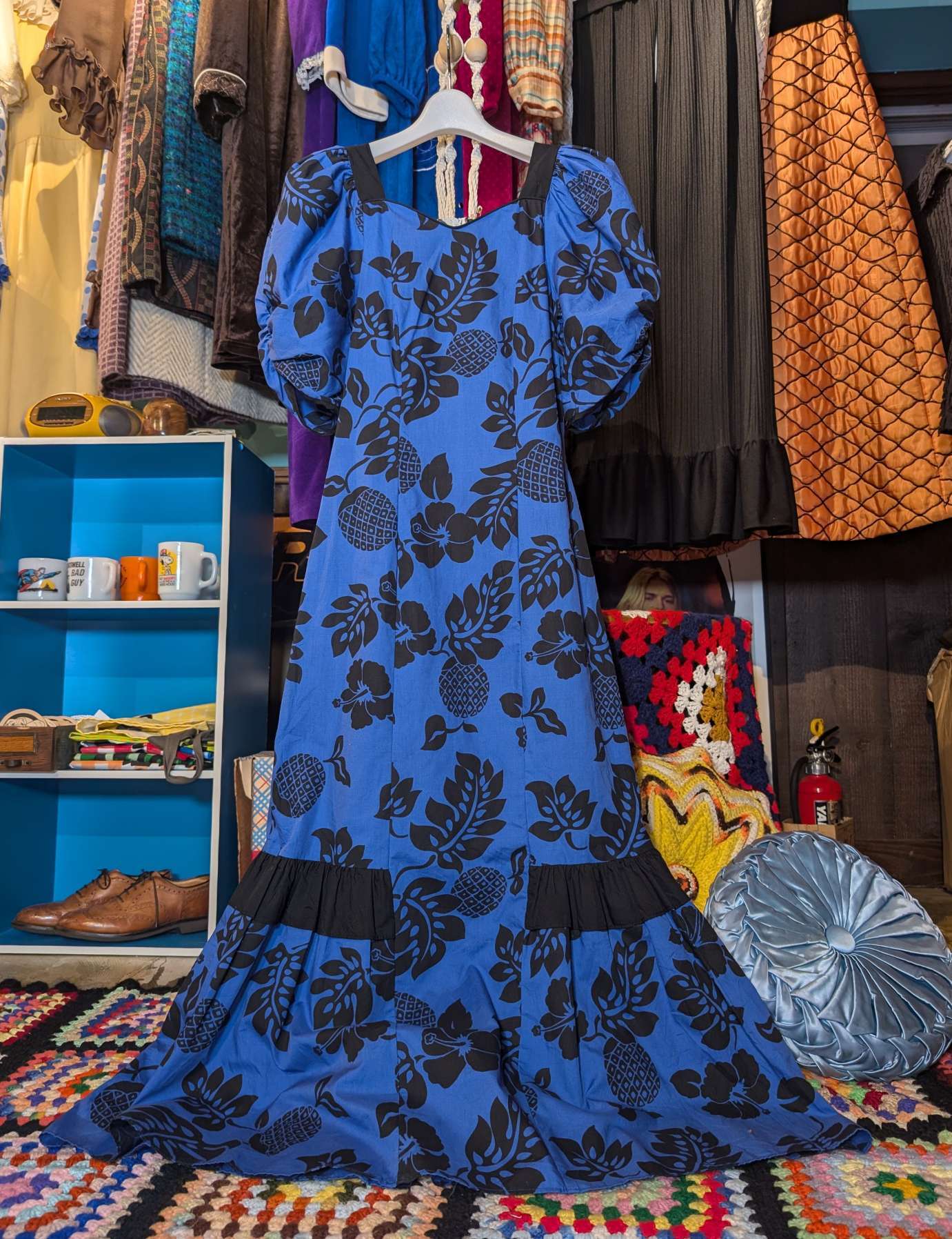 ハワイアンワンピースのイメージってすごく南国風のカラフルでボタニカルな雰囲気のイメージですが、カラーリングとデザインからくるちょっとシックな雰囲気が珍しいかと。