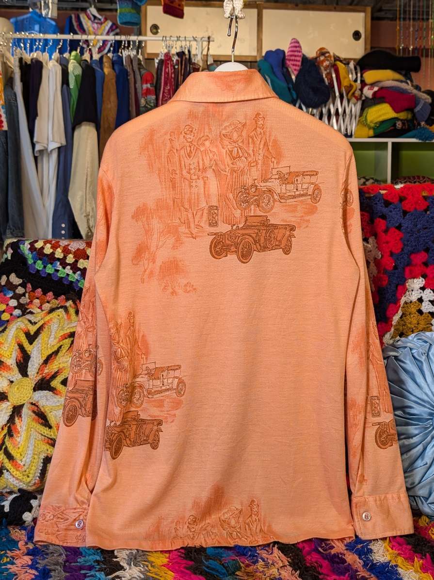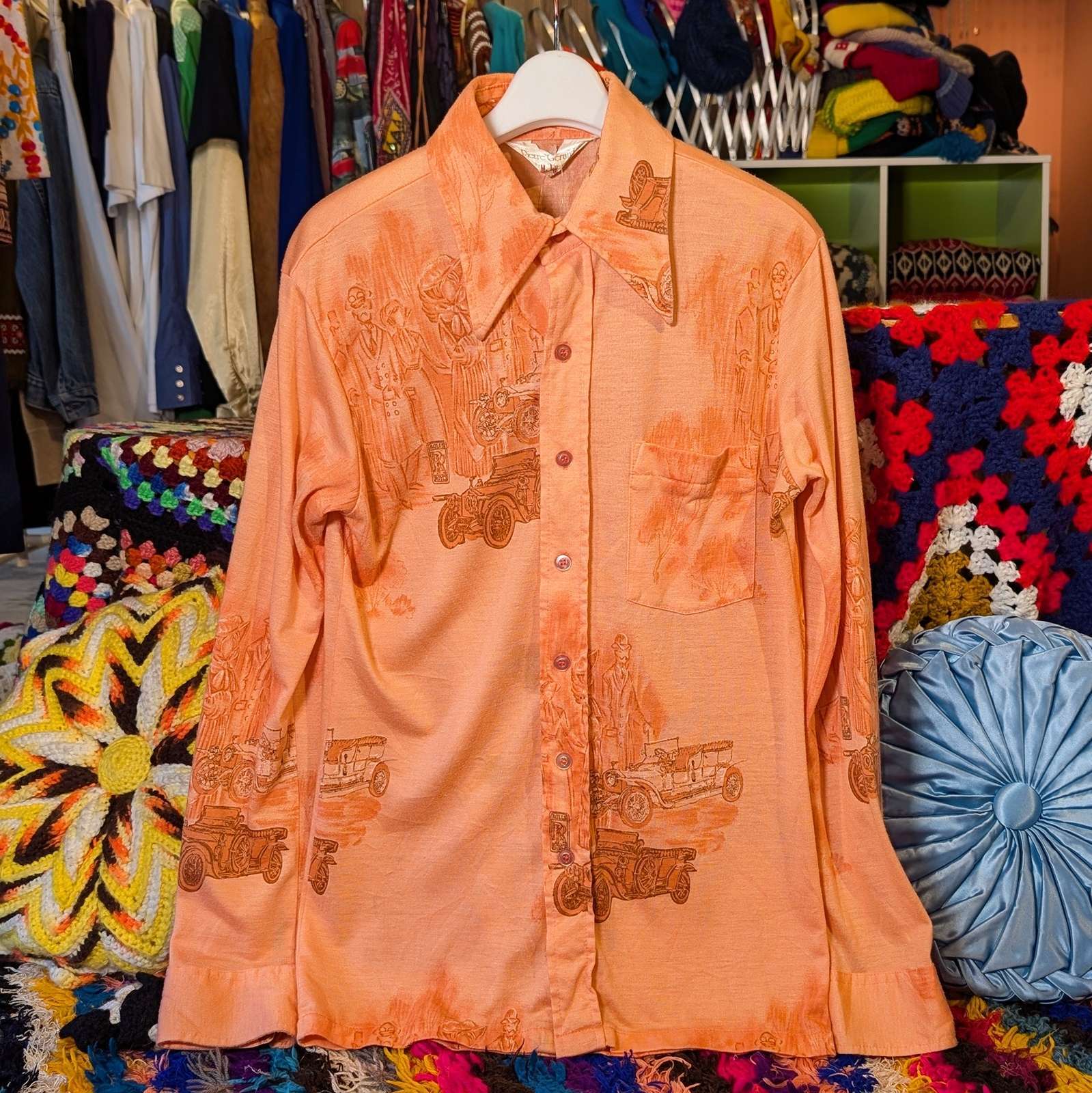 ジャストで着られるサイズ感で、インナーとしても重宝します◎ありそうでない滑らかなオレンジが素敵。フレアなパンツなどをあわせて、古着らしいスタイリングがオススメです◎