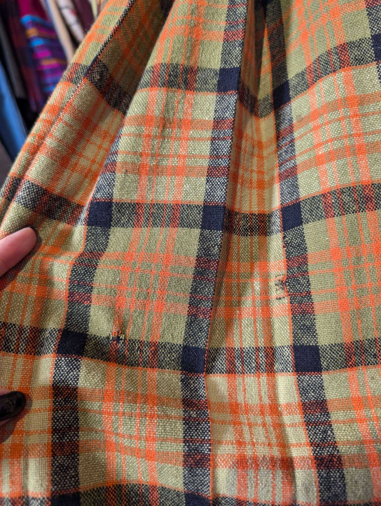 温かみのあるベースカラーに黒とオレンジのチェック柄が素敵。チェックのスカートは毎年秋冬には着たいアイテムですが、ついついビビッドなものをチョイスしがちなおいらです。