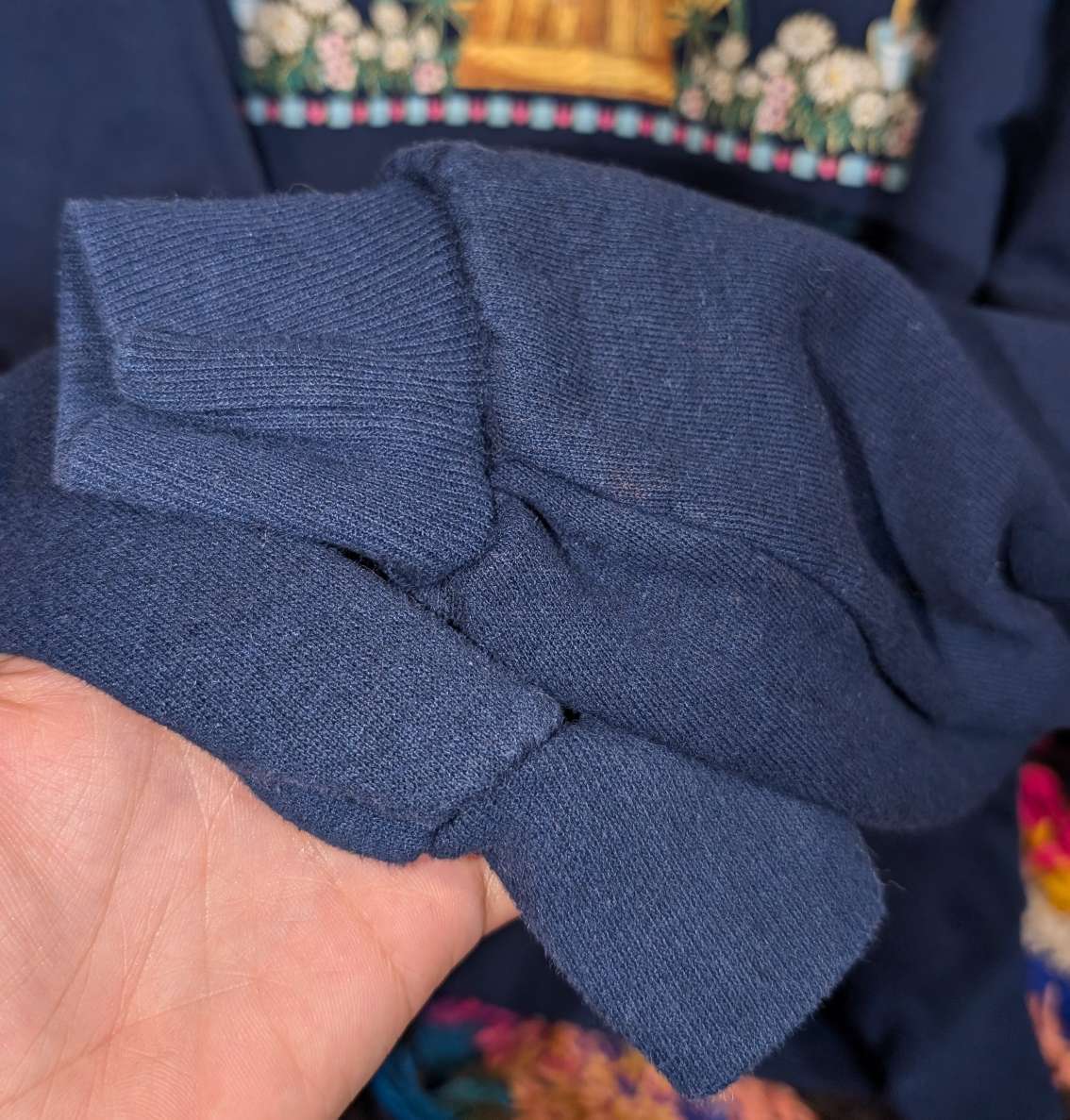 ベースのカラーリングはネイビーで、可愛らしいプリントとのギャップが◎ゆとりあるサイズ感なのでプリントスカートなどでズルズルと合わせても可愛いかと(◠ᴥ◕ʋ)
