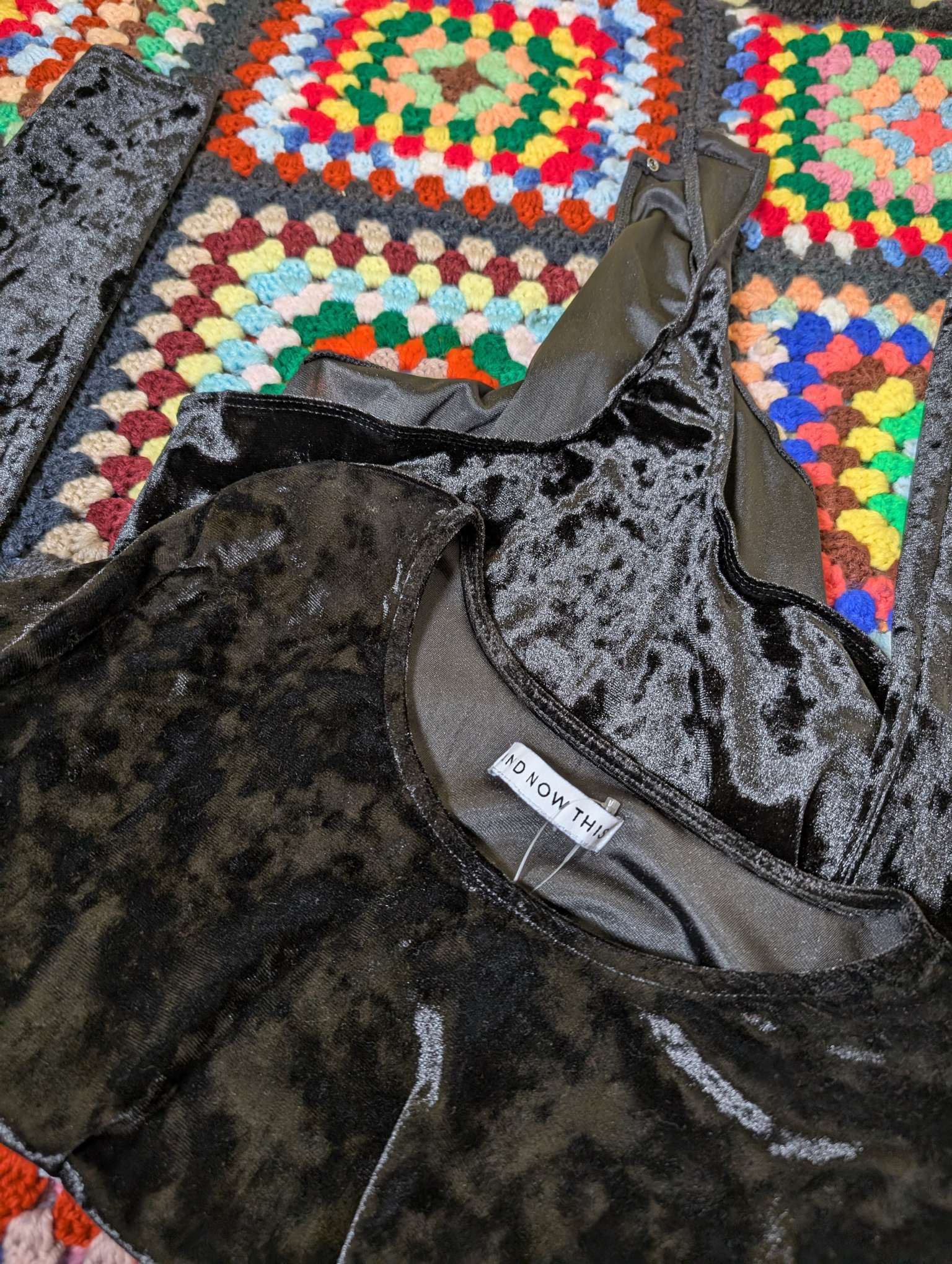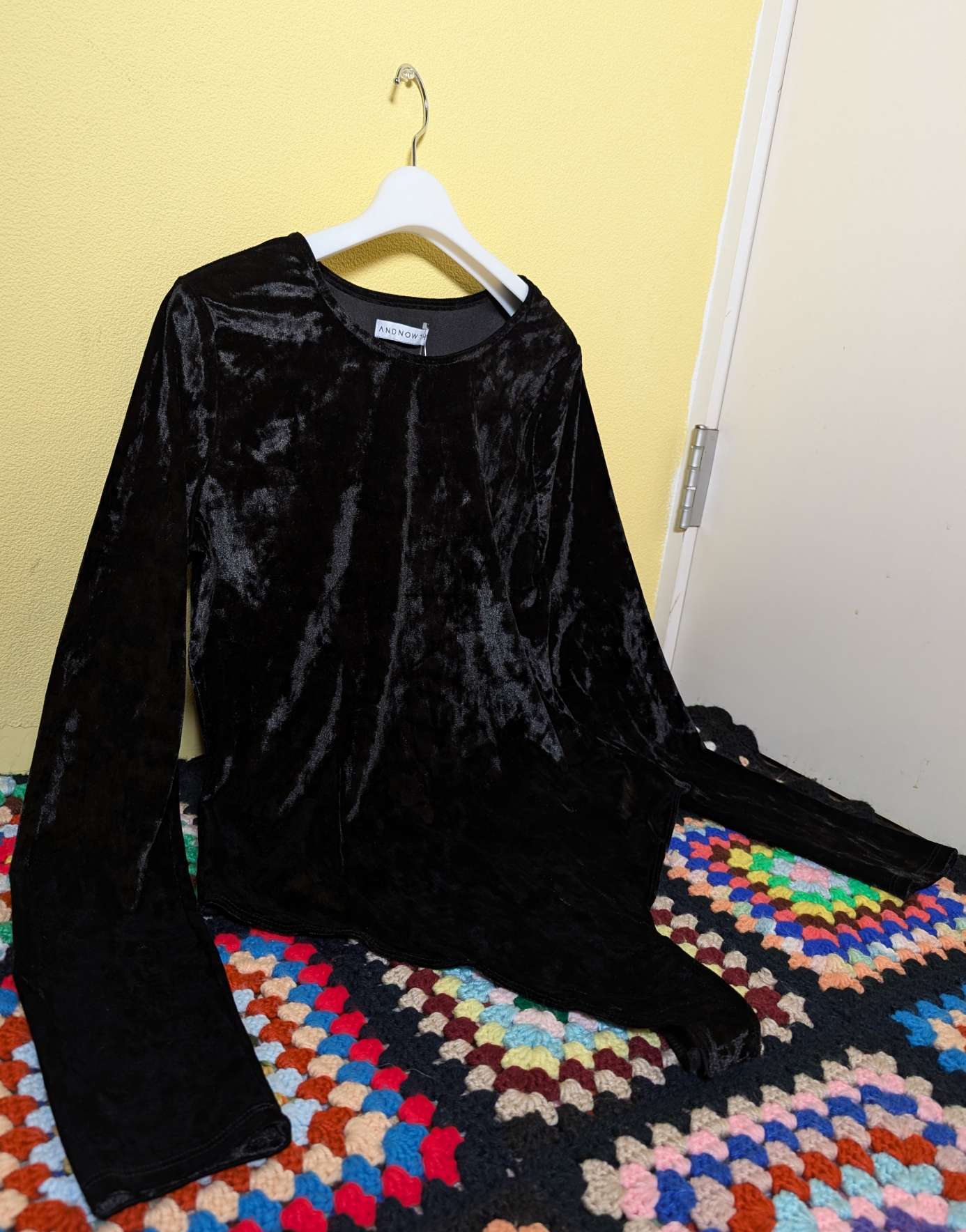 滑らかな光沢とツヤ感が素敵なベロア素材、ゆるい空きのある首元で品のある印象です。