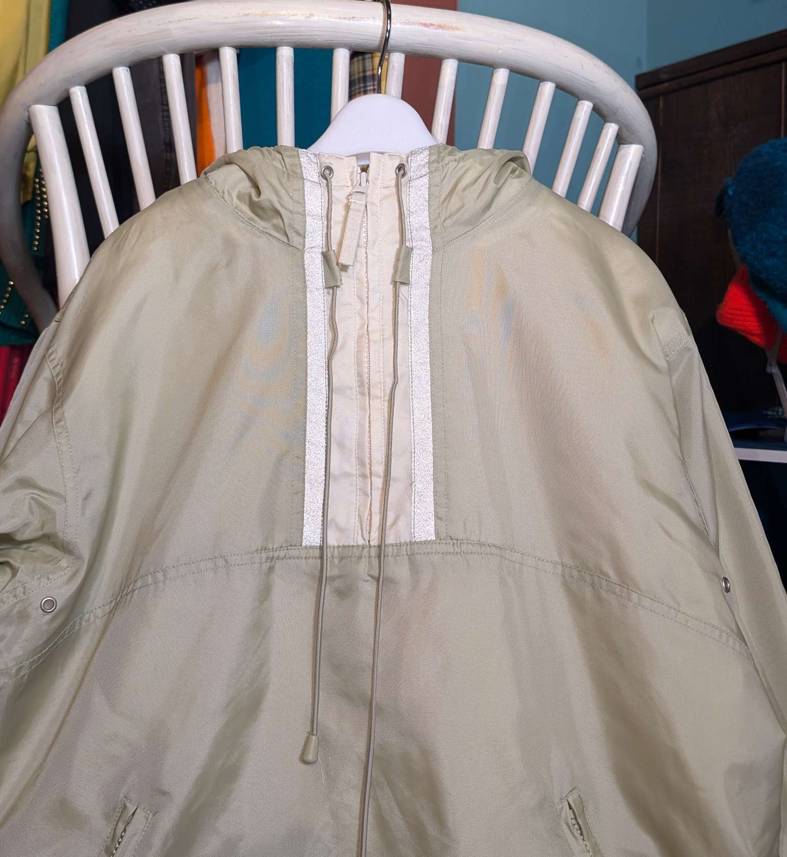 色味は、ベージュ×オフホワイト。クリーンな雰囲気のカラーリングが魅力的。背面と正面に入ったラインとそのサイドにはリフレクターが施されています。