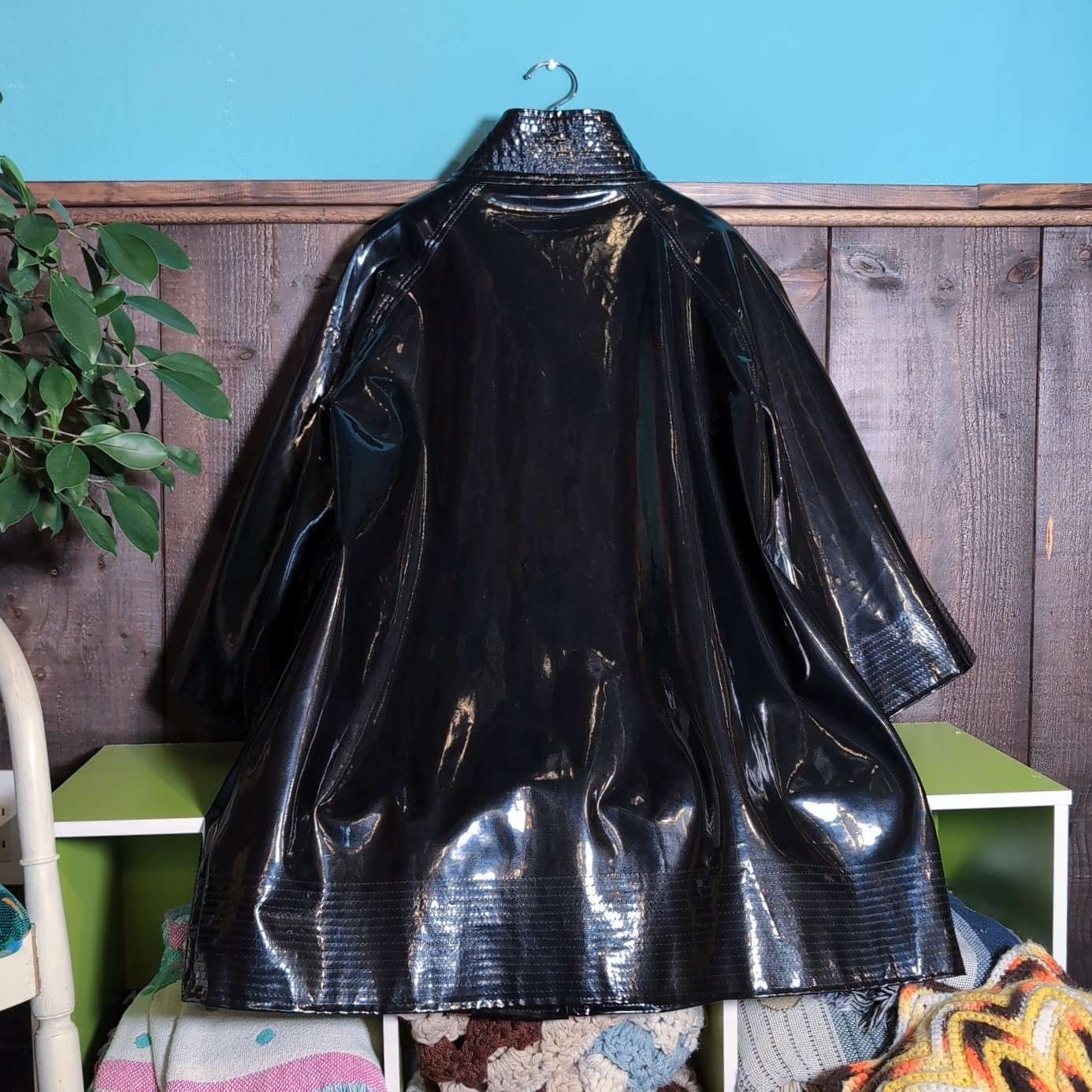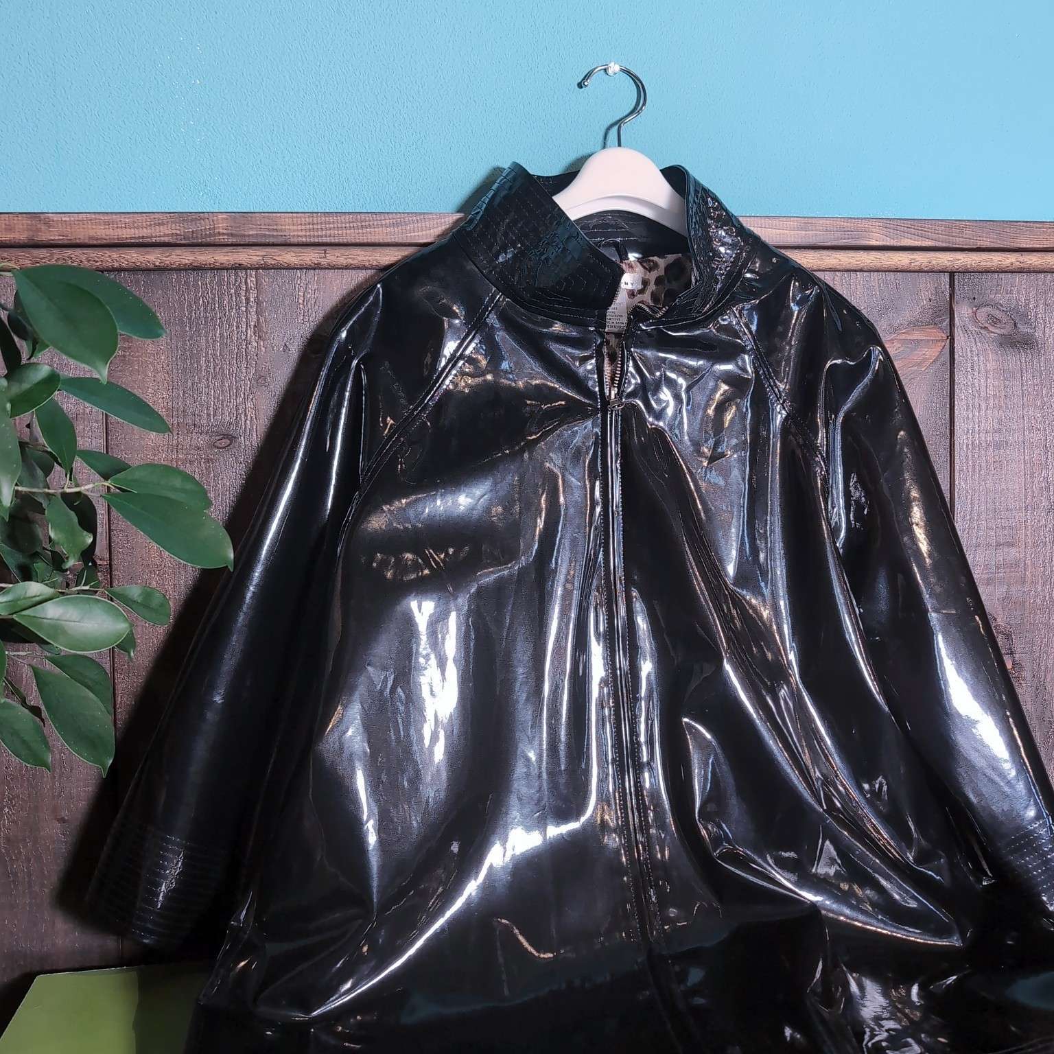 色味は、ブラック×ベージュ×ブラウン。特有のツヤとハリ感が綺麗な一着。スタンドカラーにラグランスリーブのカッコいいシルエット。