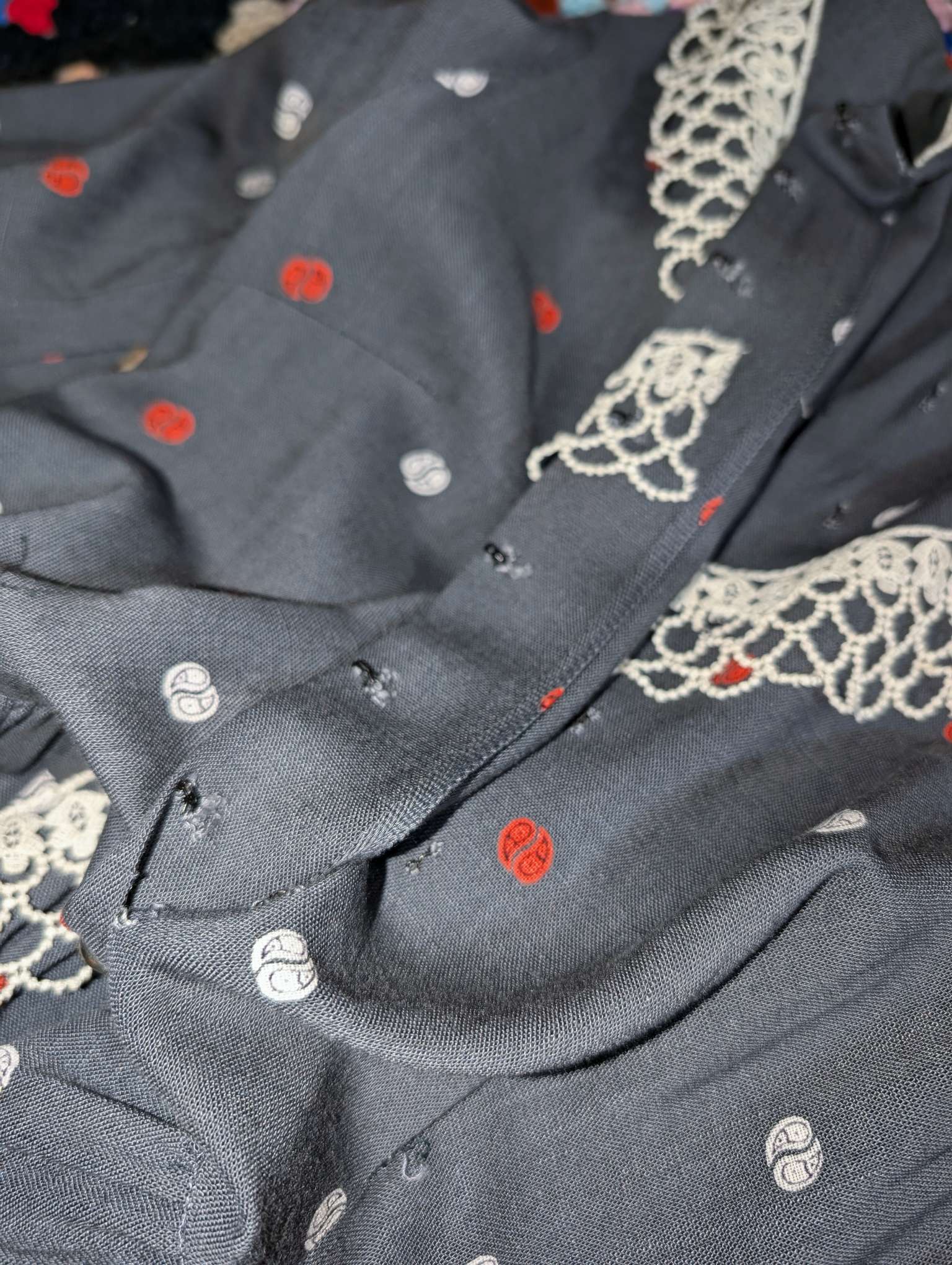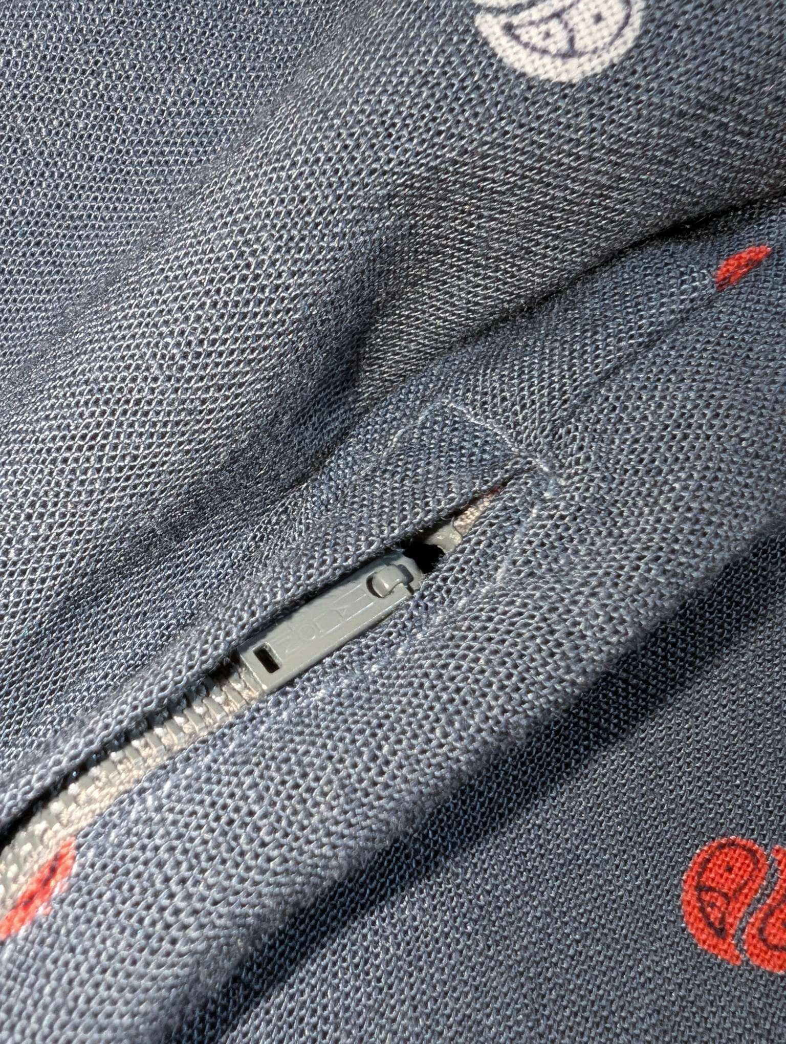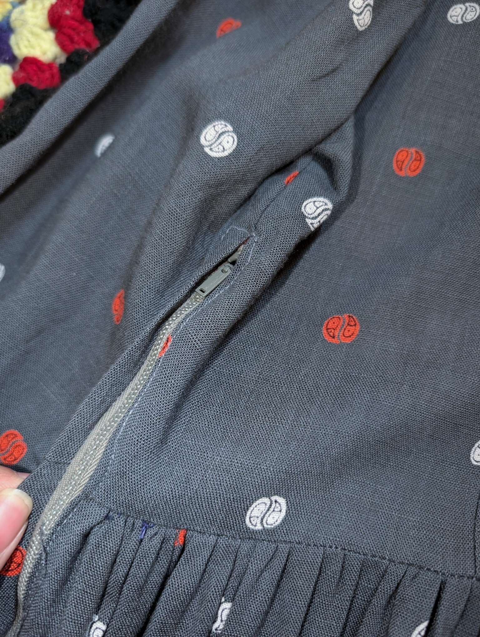ベースカラーが落ち着いたグレー、ドットのように見えるテキスタイルはよくよく見ると陰陽☯のようなマークでちょっぴり個性的。