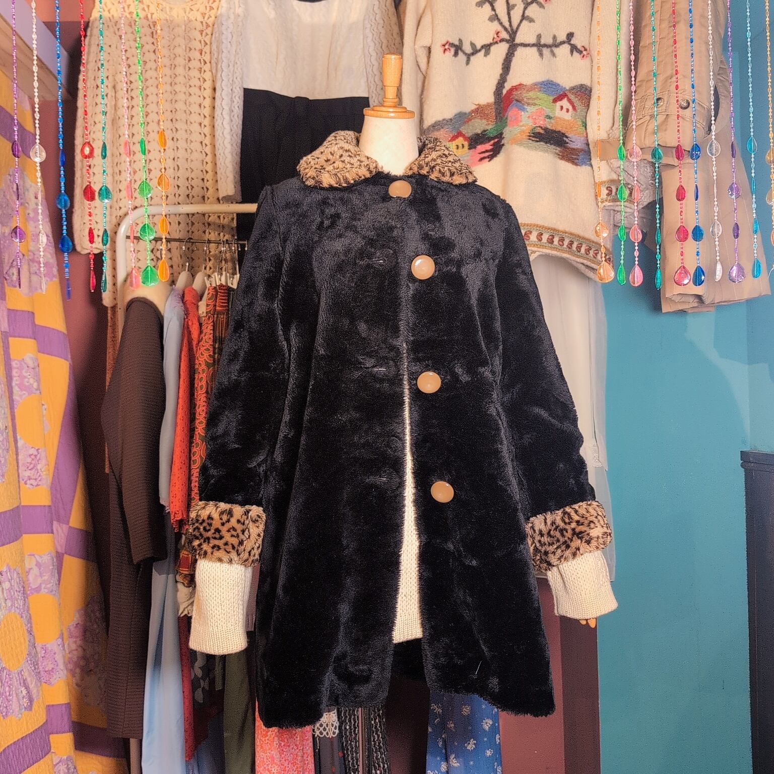 程よいボリューム感がありつつも、綺麗なシルエットがわかるデザイン。小ぶりな襟や大きなボタンはレトロな雰囲気ですが、艶のあるファーはちょっぴりミステリアス。レオパードのアクセント等ディティールはちょっぴり大人な印象ですがデザインとの心地よいギャップを感じる非常にいいバランスが魅力の一着です。