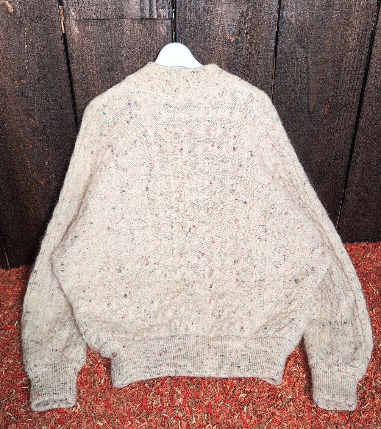 身幅が広く着丈が短い、ドルマンシルエットで脇周りにモタモタと余るニットの柔らかい雰囲気もとっても可愛いです。