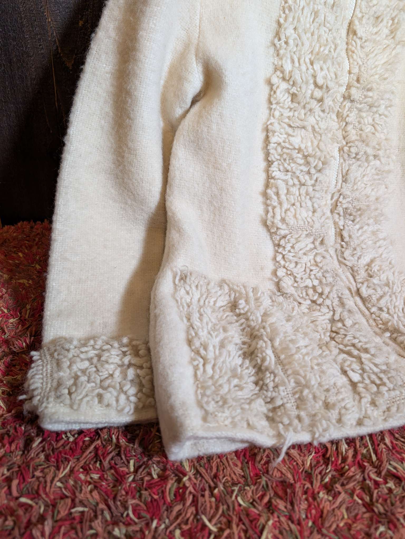 丸いカーブの襟と、アウトラインのモケモケがかわいいです。身幅とシェイプしたきれいなラインが魅力的。また、しっかりと裏地が取り付けられているので微妙な時期のアウターとしても活躍してくれます◎