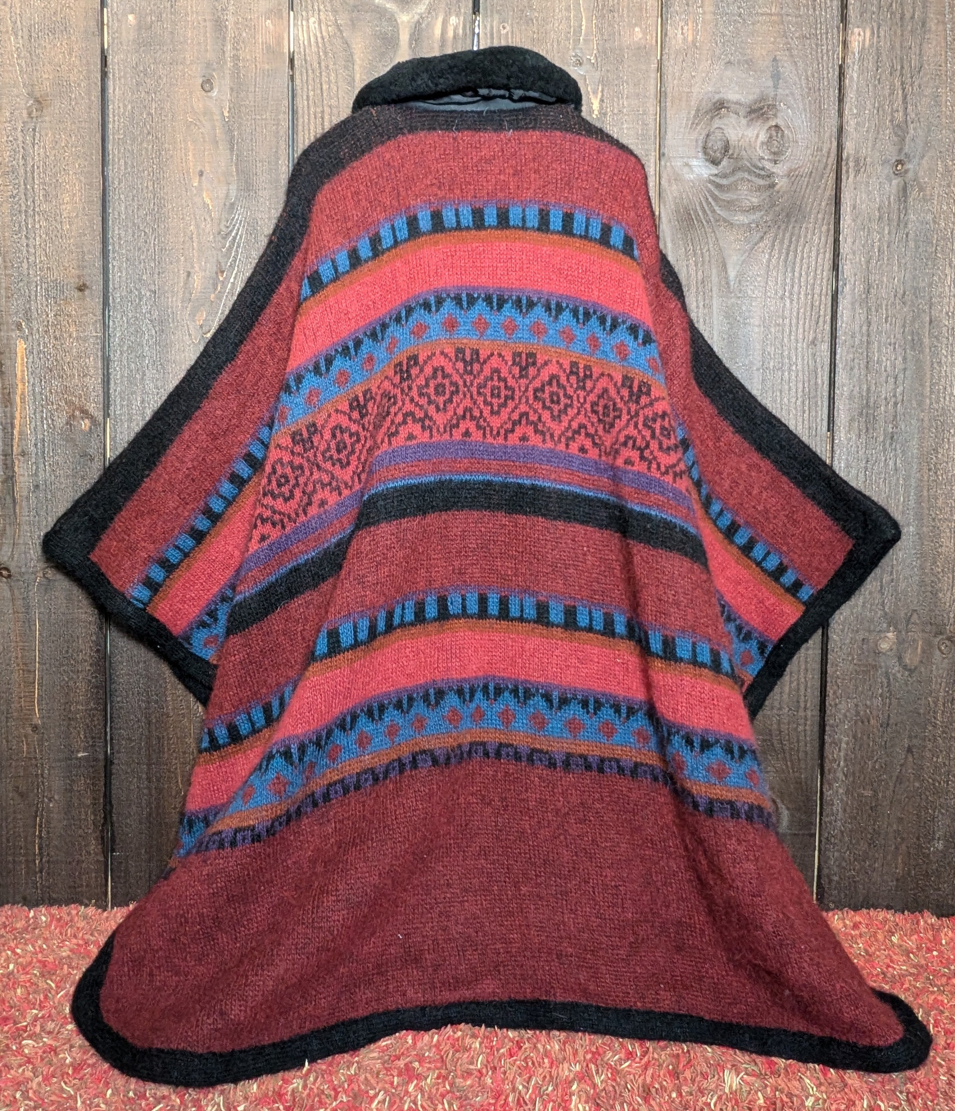 柔らかく体を包み込みつつも、きちんと独立してくれる立体感が◎ネイティブ柄の比較的カジュアルな模様ですが着たときに余る裾の余裕ある揺れや襟もとの小ぶりなフェイクファーを含めちょっぴりゴージャスな雰囲気を持ち合わせているのが素敵。