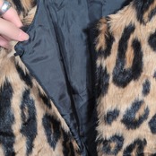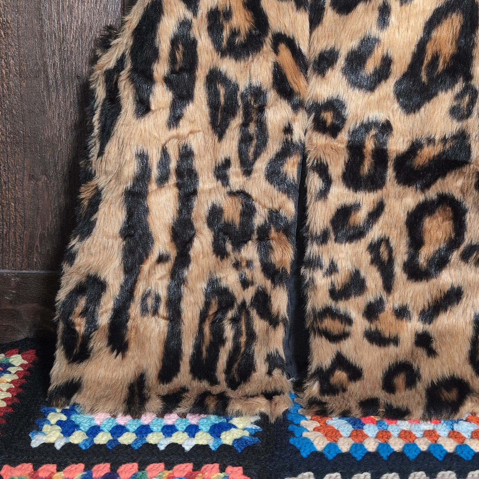 大きめのヒョウ柄が目を惹きます。モコモコと、長い毛足に対し厚み自体はそこまでなくボリューミーになりすぎずにちょい足しできるのが魅力的。