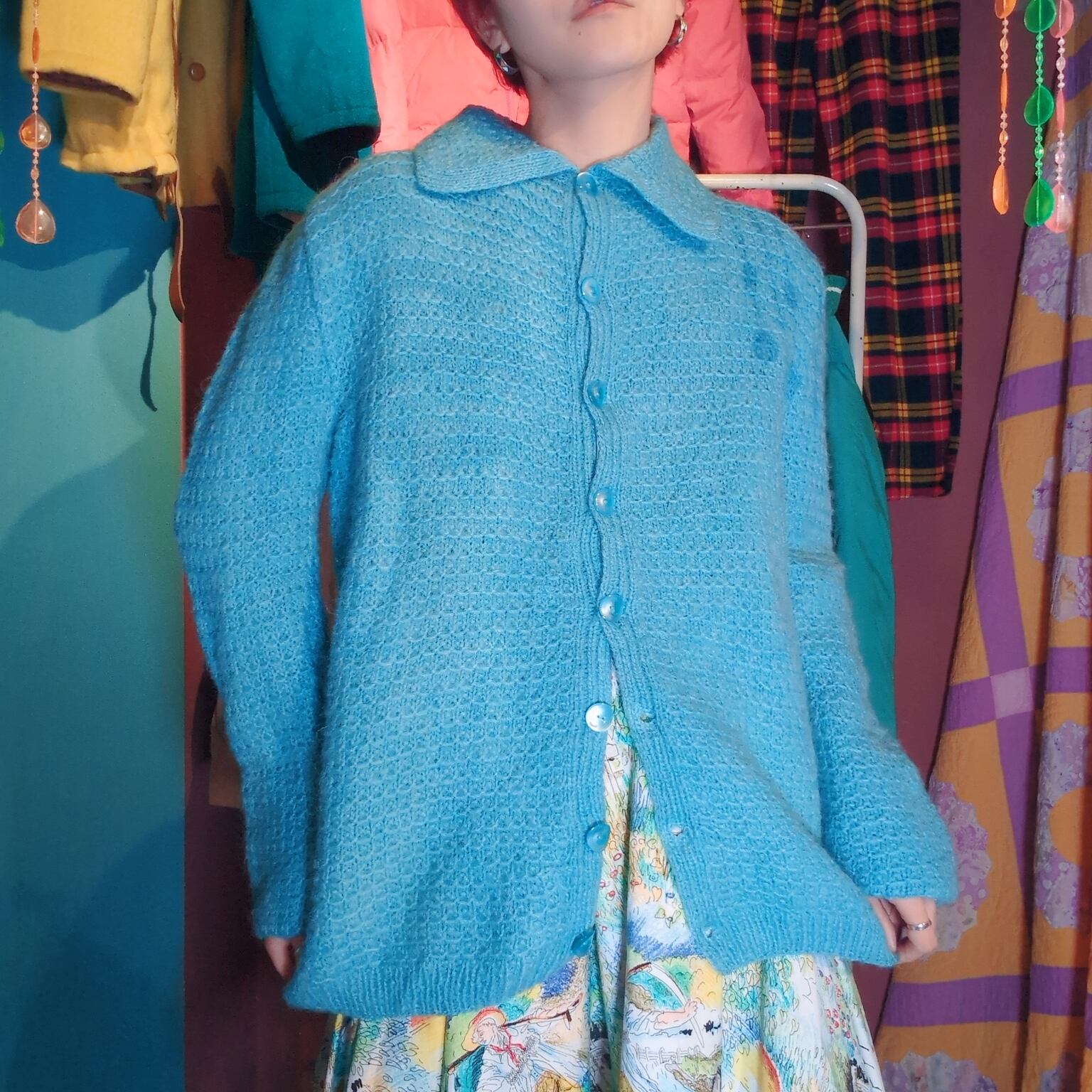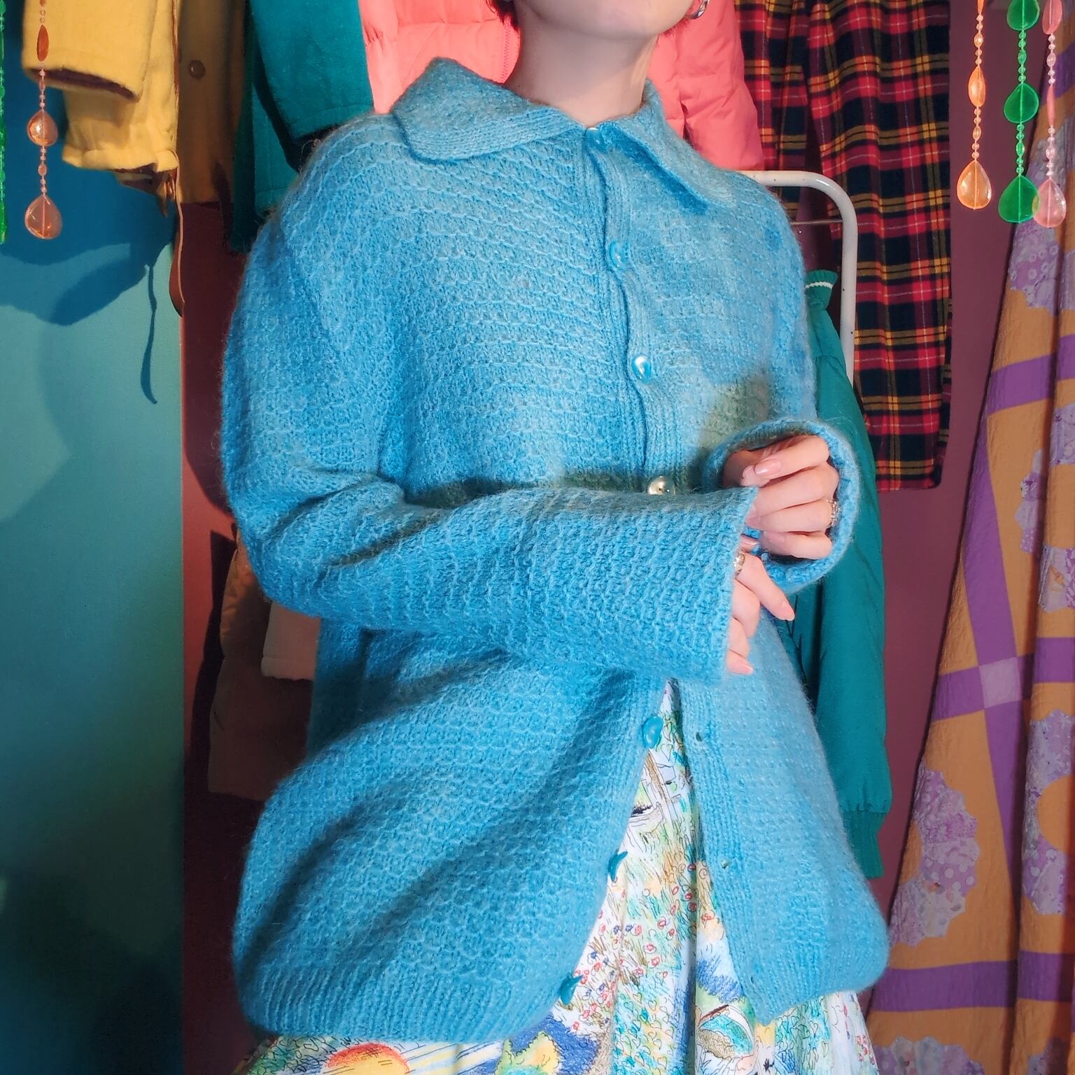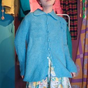 もちもちした質感と、襟の大きさ、袖の厚み、実際に着るとフレアな袖がなんとも可愛い。