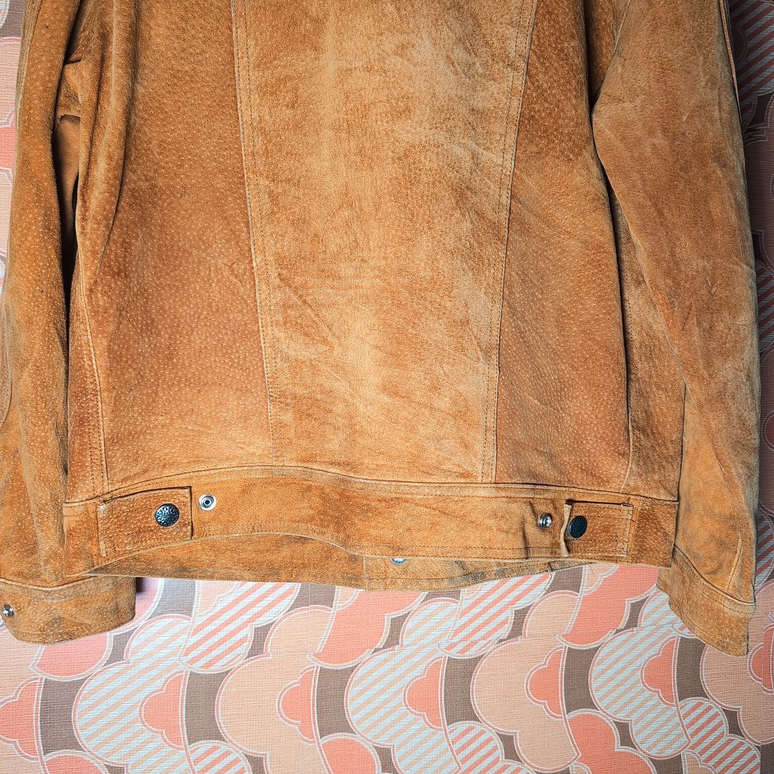 シンプルかつ美しい形、スウェードですがパキッとした質感でキチンと感がある。ポケットが4つ、背面はスナップボタンで若干のシルエットの調節が可能。