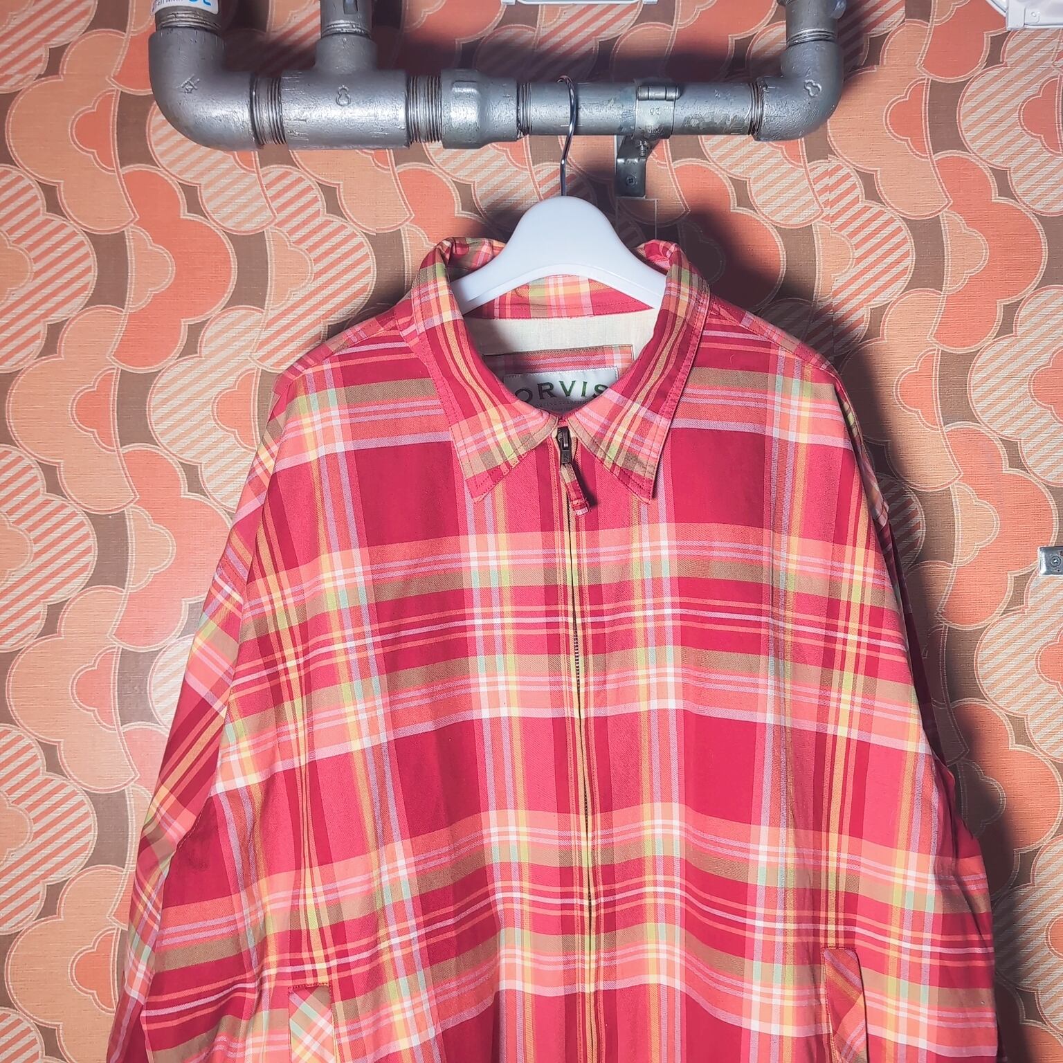 明るくカラフルなマドラスチェックが魅力的。チンスト、フロントジップのクラシックなディティールながらもこの柄っていうのが良いギャップです。