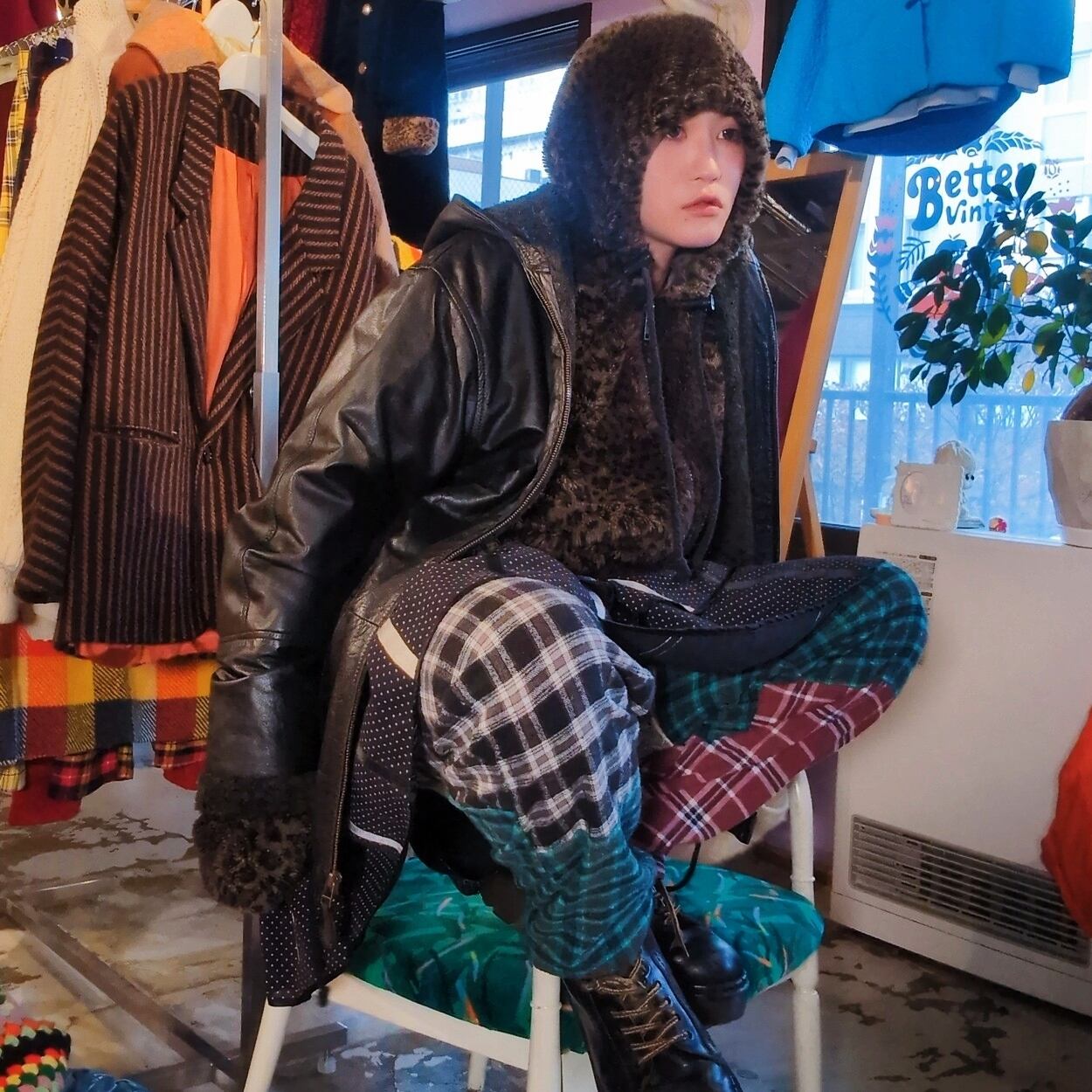 今回は、レオパードのジャケットや少しハードめなレザージャケットと絡めつつ、アクセントとして合わせてみました。