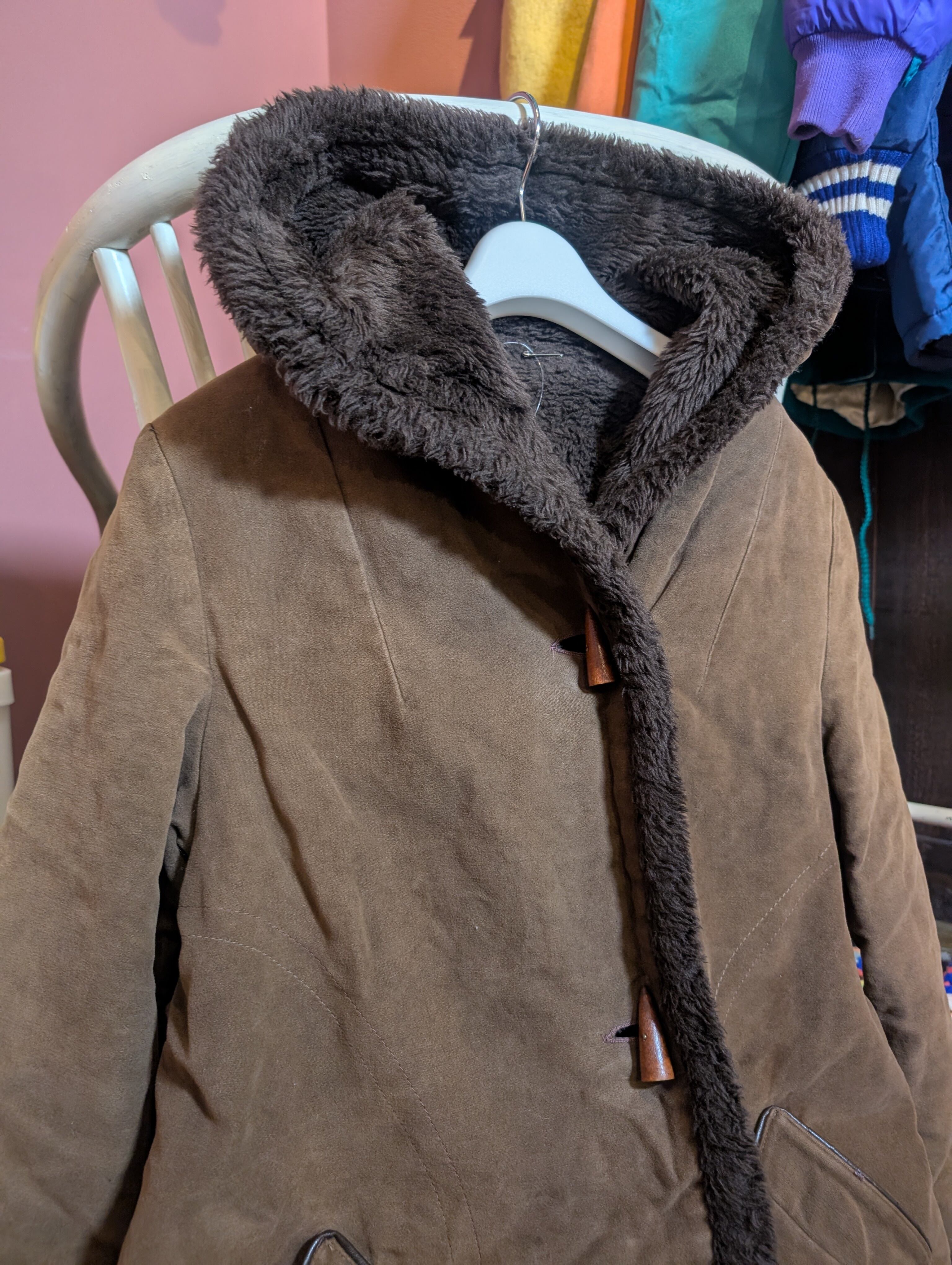 裏地のふわふわとしたボア、滑らかな肌触りと軽い着心地が魅力的です。