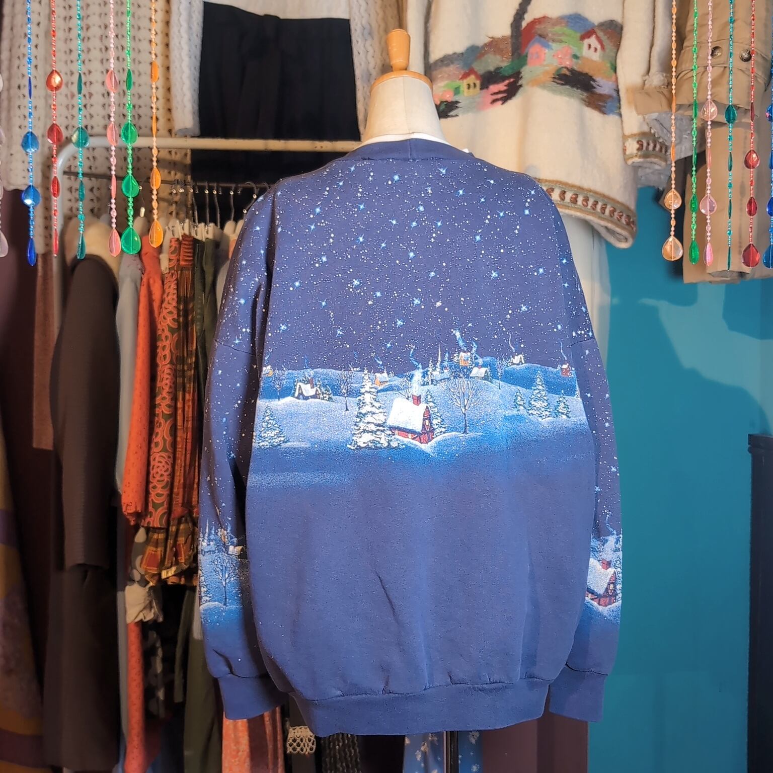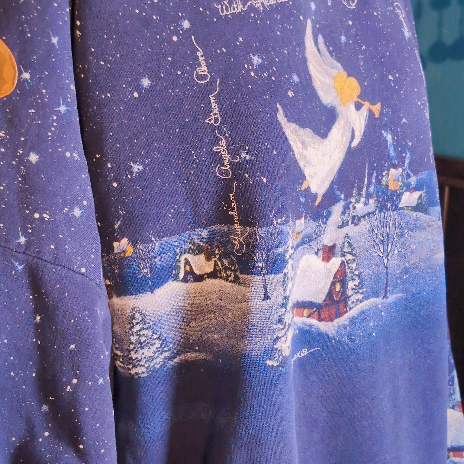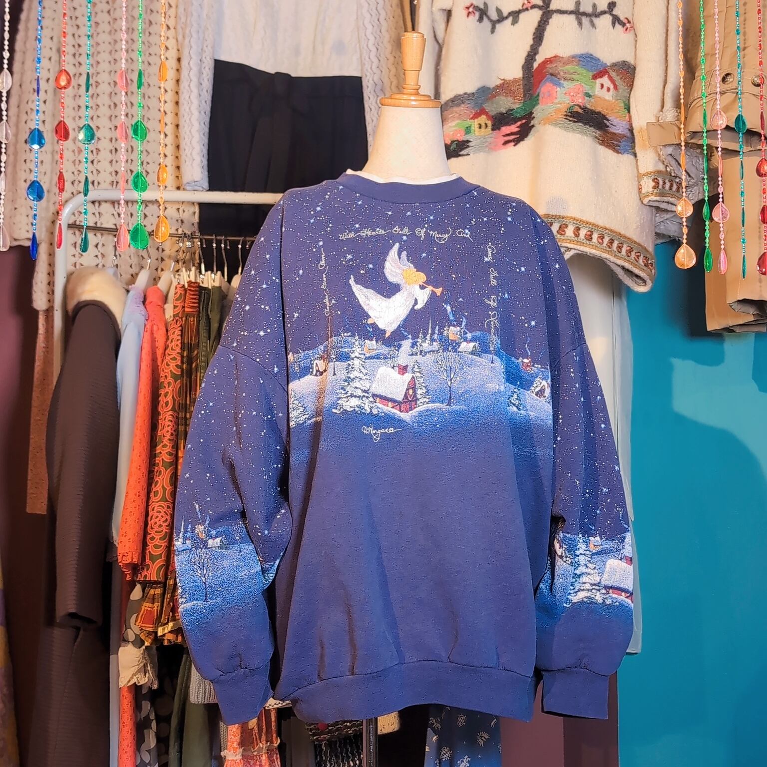 雪の降る夜の街に、ラッパを吹くエンジェルがロマンティック。ファンタジーの世界のようなキラキラとした銀世界は今の季節にぴったりです。