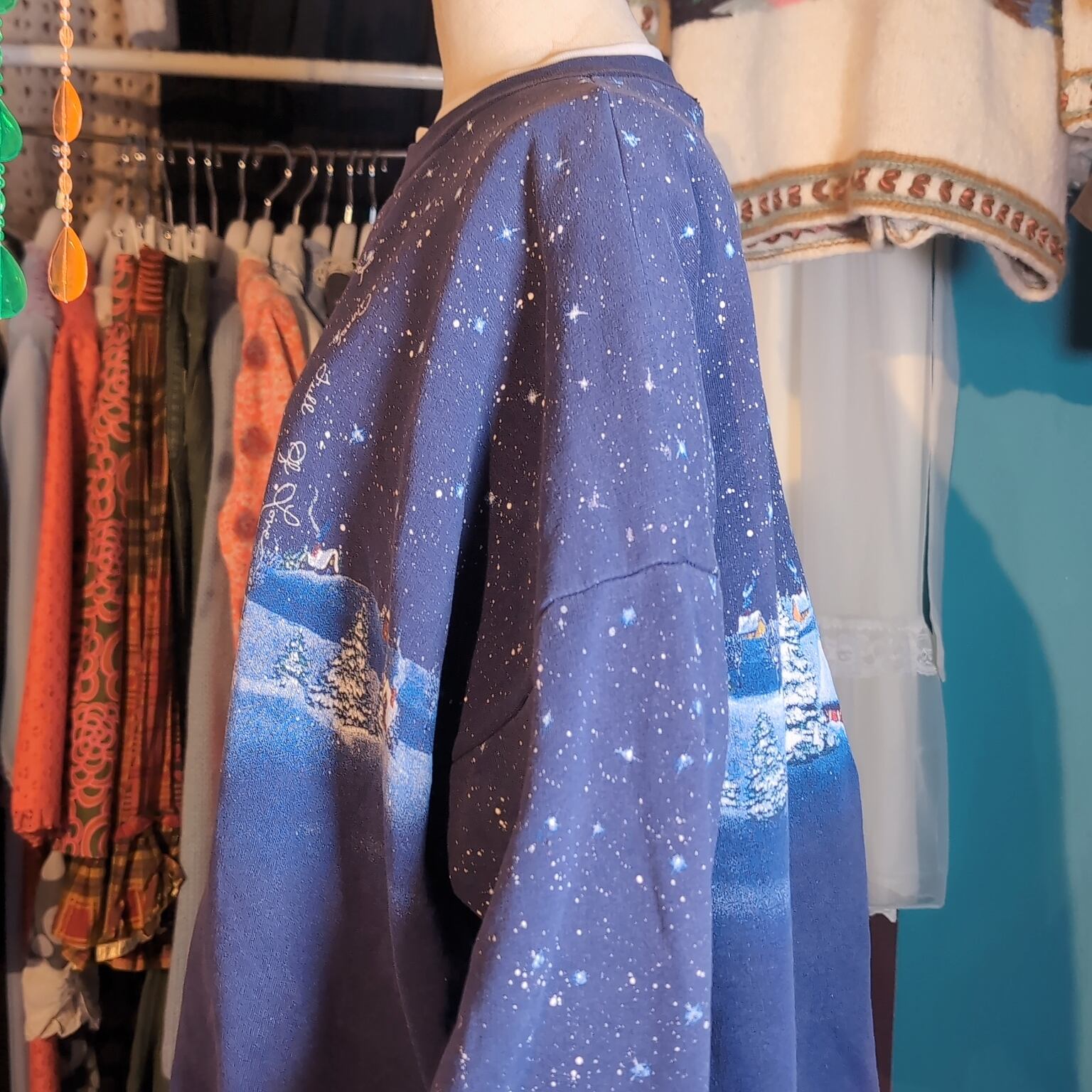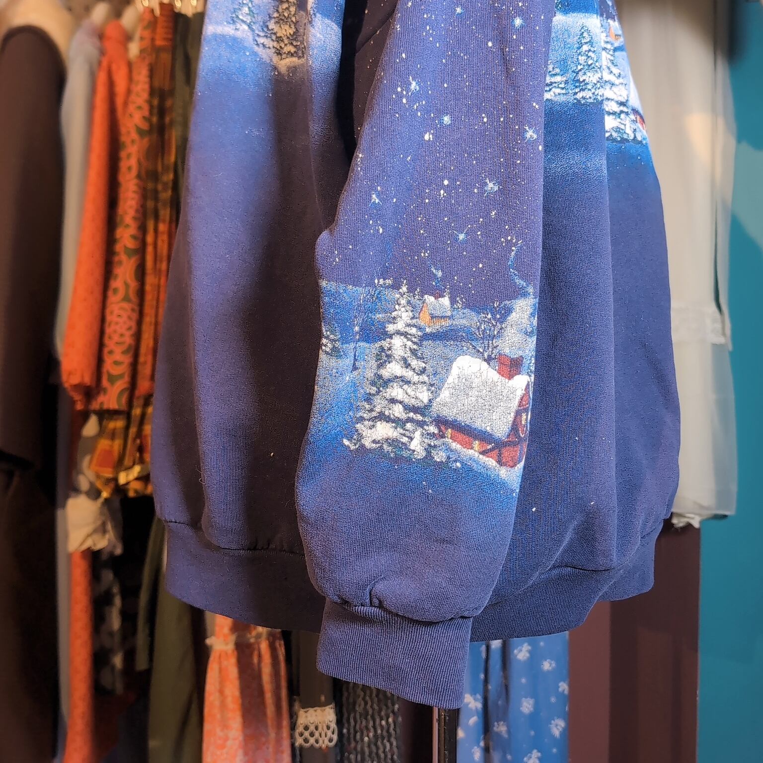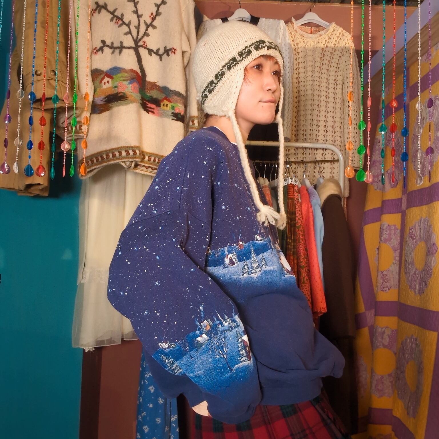 雪の降る夜の街に、ラッパを吹くエンジェルがロマンティック。ファンタジーの世界のようなキラキラとした銀世界は今の季節にぴったりです。