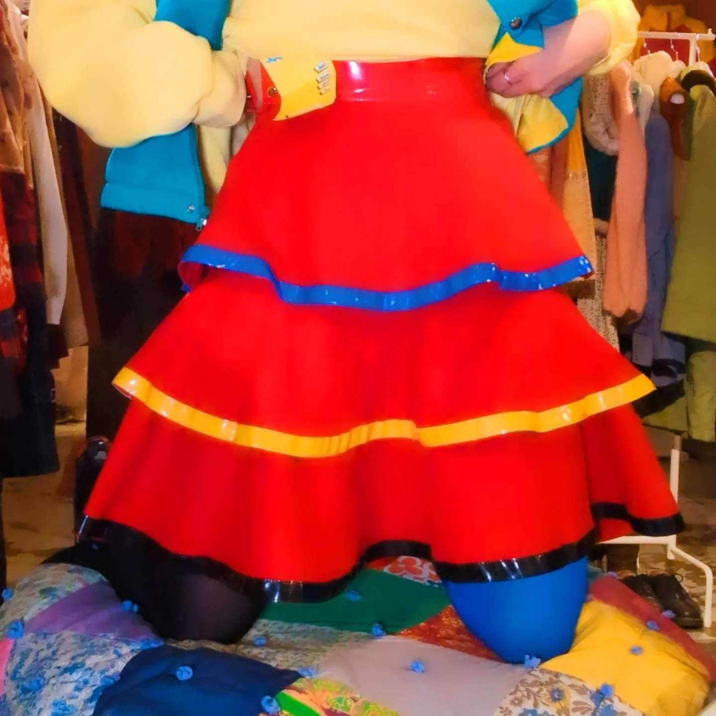 プリプリとしたティアードがとってもキュート。アウトラインに施されているのはPVCのカラーテープ。ツヤツヤテカテカとしたカラーテープが新鮮。