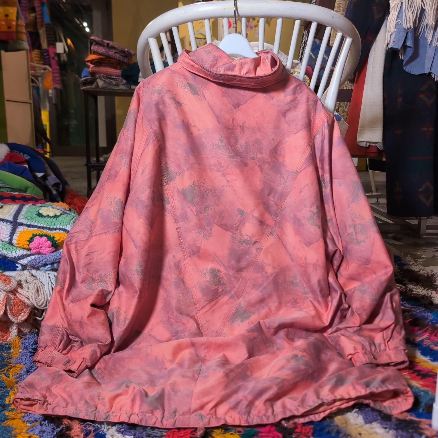 まだら模様のテキスタイル、こすけ感のあるピンクやカーキのカラーリングにゆったりガバっと着られるサイズ感の組み合わせが魅力的。